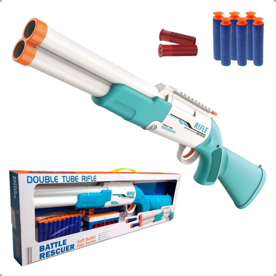 espingarda de brinquedo, rifle infantil, arma de dardos, brinquedo com cano duplo, soft bullet gun, brinquedo com cartucho, recarregável, rifle recarregável, brinquedo de ação infantil, battle rescuer