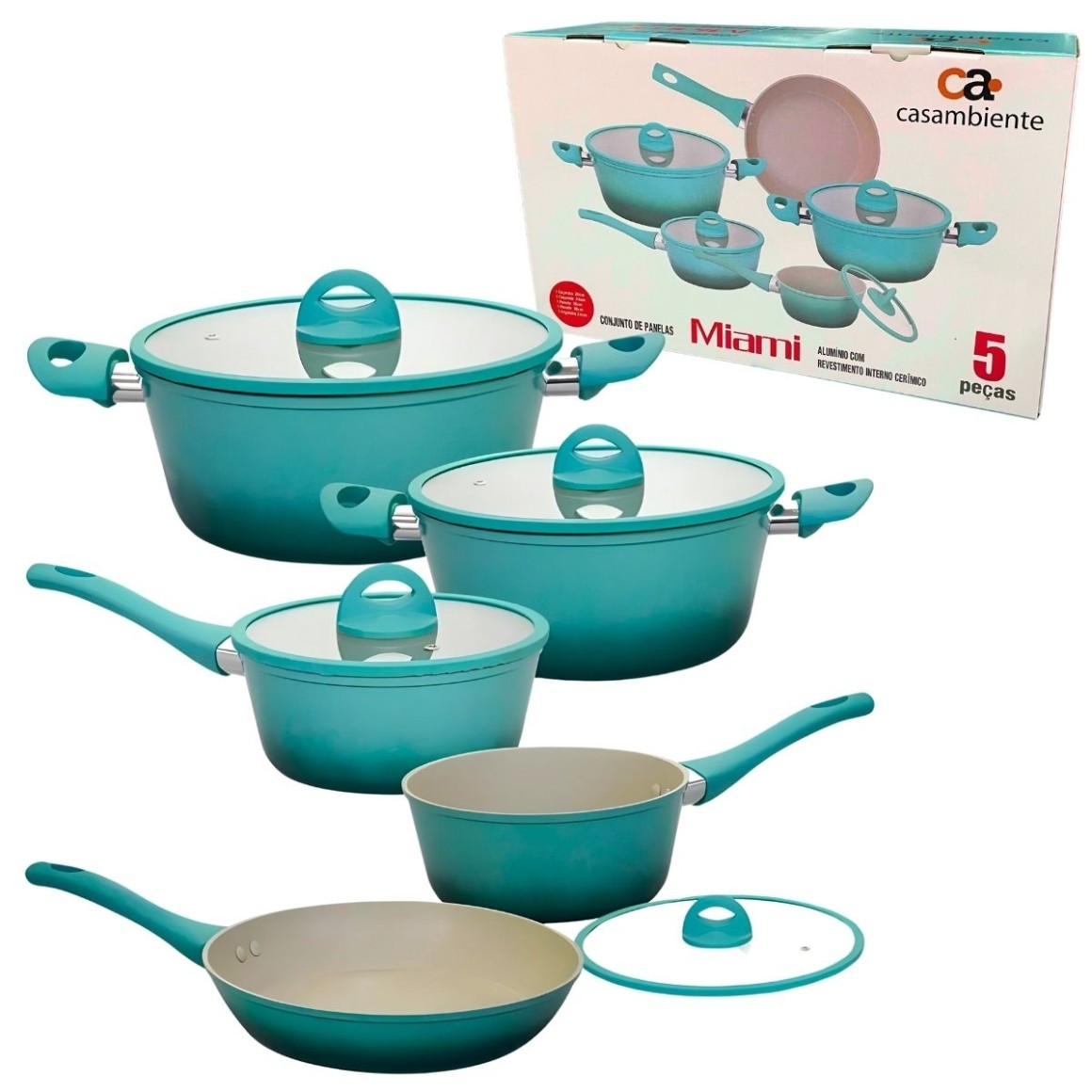 Conjunto de Panelas de Indução Revestimento Cerâmico Miami Verde – Casambiente – 5 Peças