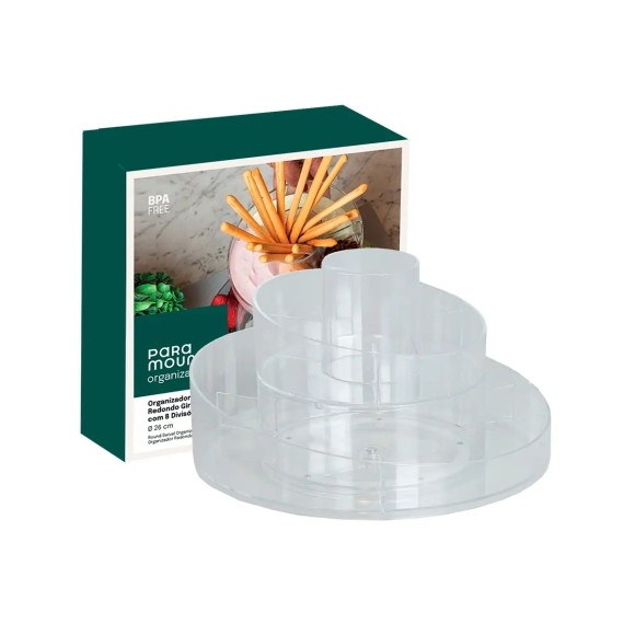 Adicione agora o Organizador Giratório com 8 Divisórias em Poliestireno Transparente à sua rotina de organização e desfrute de um ambiente mais arrumado e funcional.