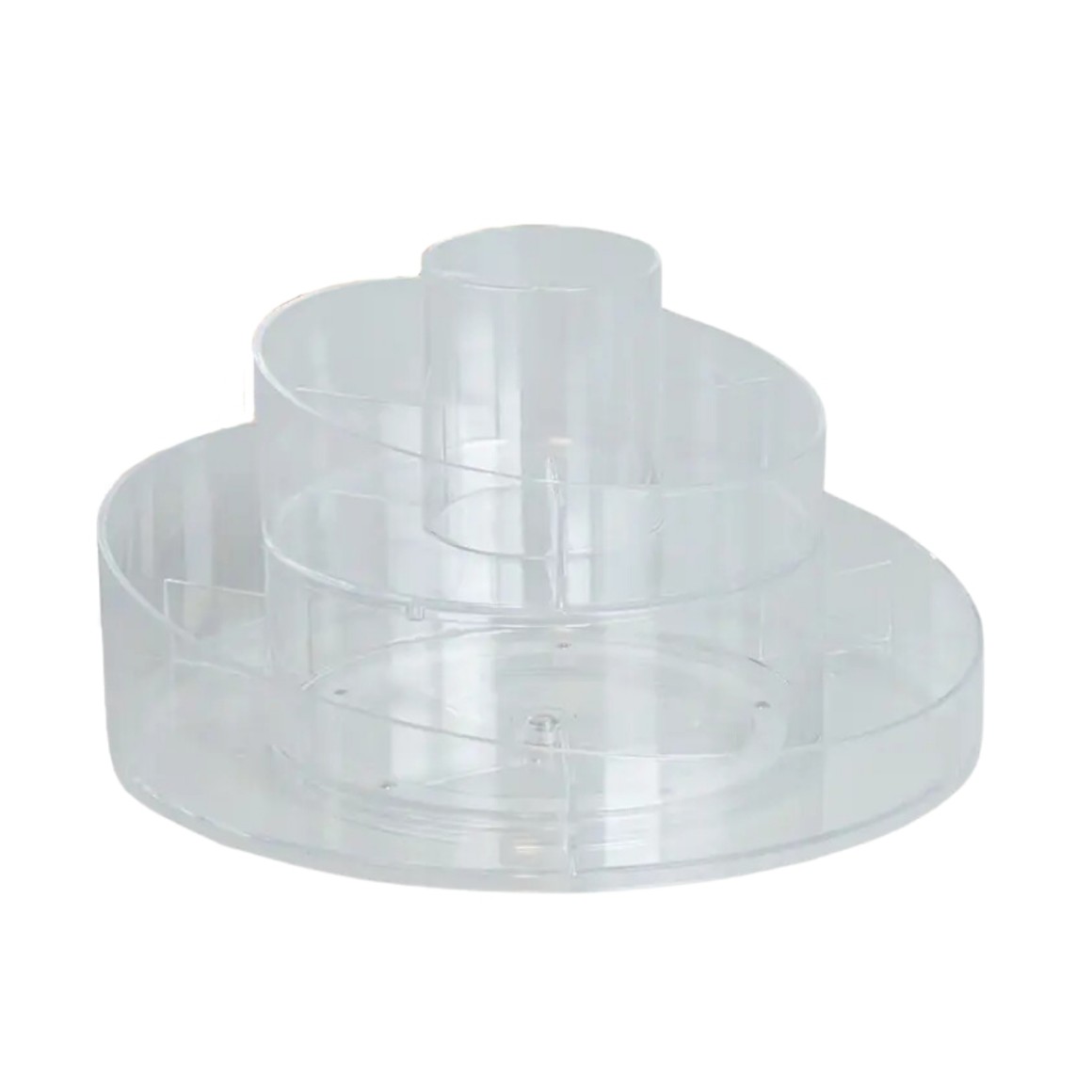 Feito de poliestireno transparente de alta qualidade, este organizador é durável e permite visualizar facilmente os itens armazenados. Com seu design giratório, oferece acesso rápido e conveniente a cada uma das oito divisórias.