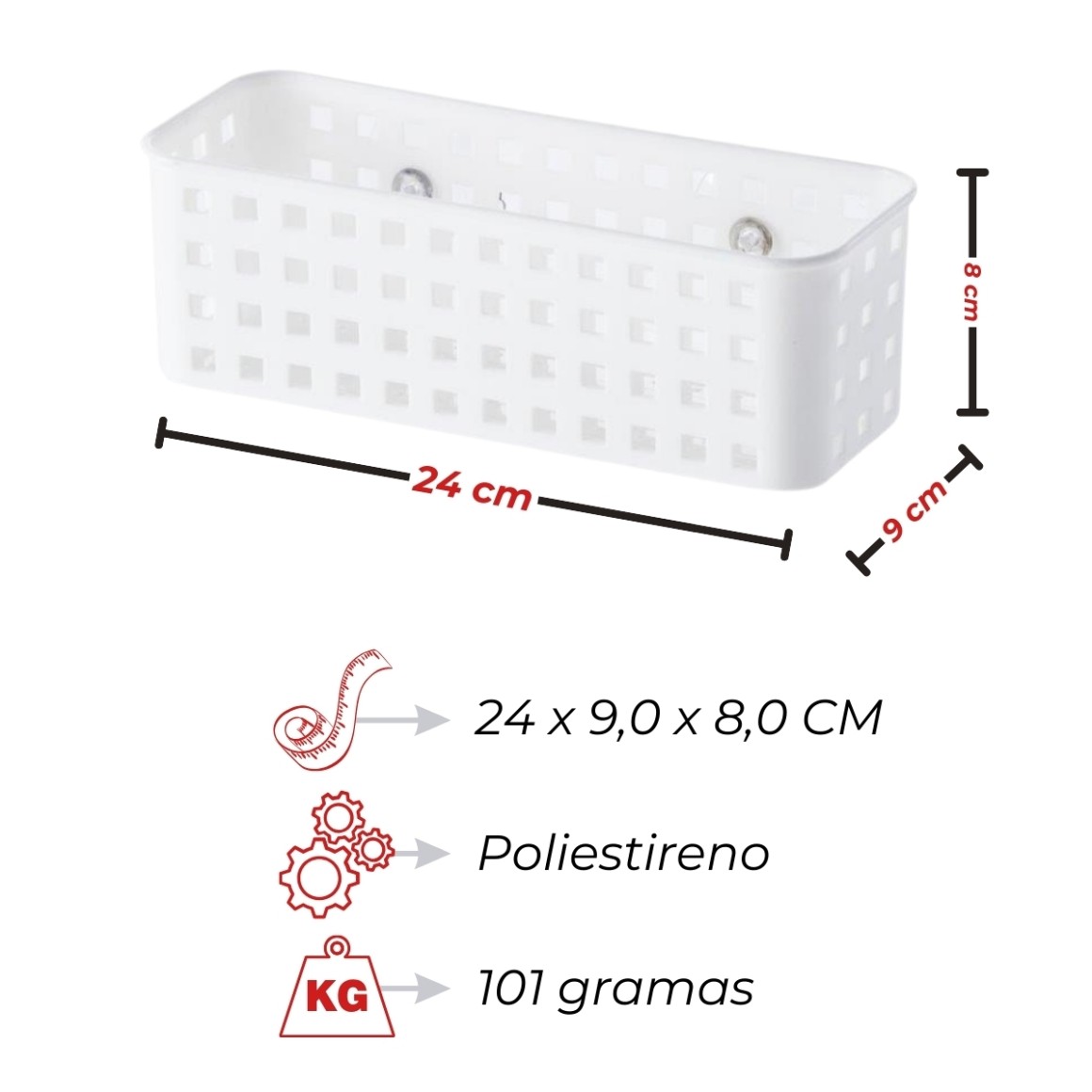 Com dimensões de 24x9x8 cm, essa cesta é compacta e ideal para armazenar diversos itens no banheiro, na cozinha ou em qualquer outro espaço da casa. Seu design clean e a cor branca combinam facilmente com qualquer decoração, proporcionando um toque de organização e modernidade.