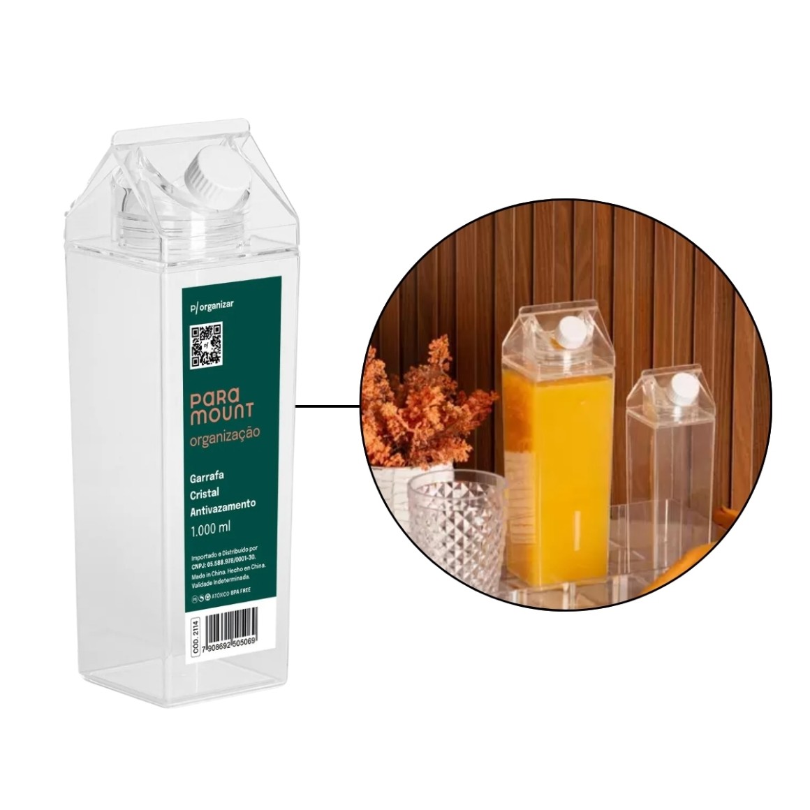 Adquira agora a Garrafa Cristal Antivazamento de 1.000 ml em Poliestireno Transparente e desfrute de suas bebidas favoritas com praticidade e estilo.