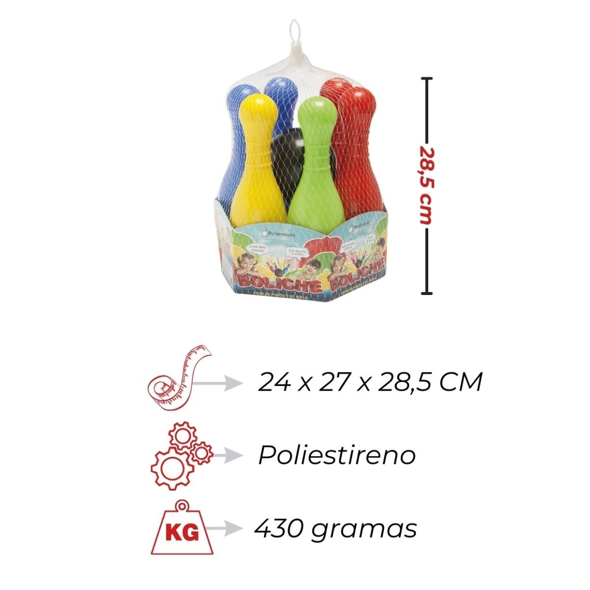 Brinquedo 6 Pinos de Boliche Coloridos com Bola da Paramount em Poliestireno