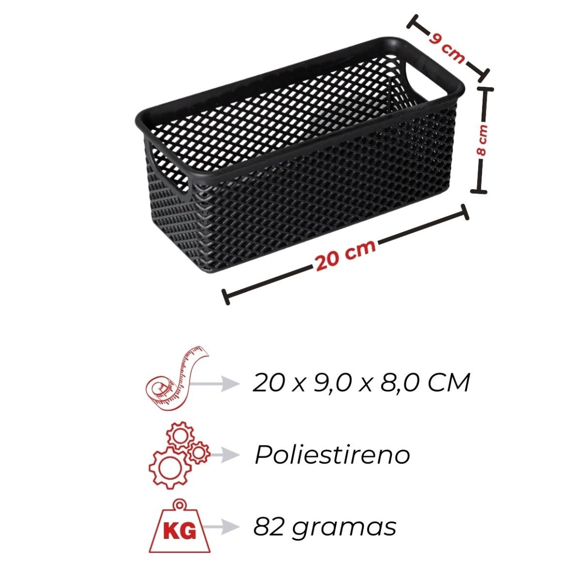 • Design Compacto: Com tamanho de 20x9x8 cm, este cesto é perfeito para pequenos espaços e objetos.