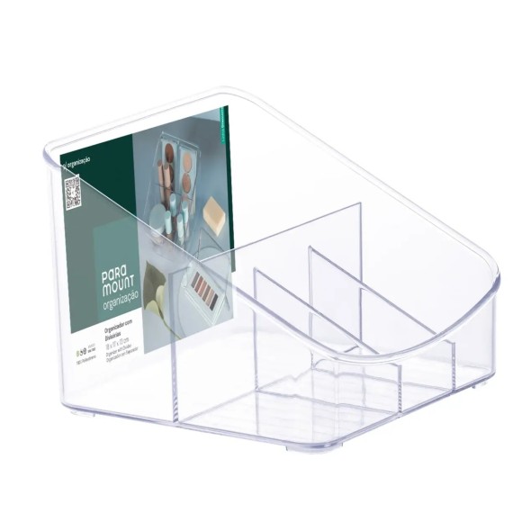 Adicione agora o Organizador Diamond com Divisórias 17 x 18 x 13 CM em Poliestireno Transparente da Paramount à sua rotina de organização e desfrute de um espaço mais organizado e funcional.