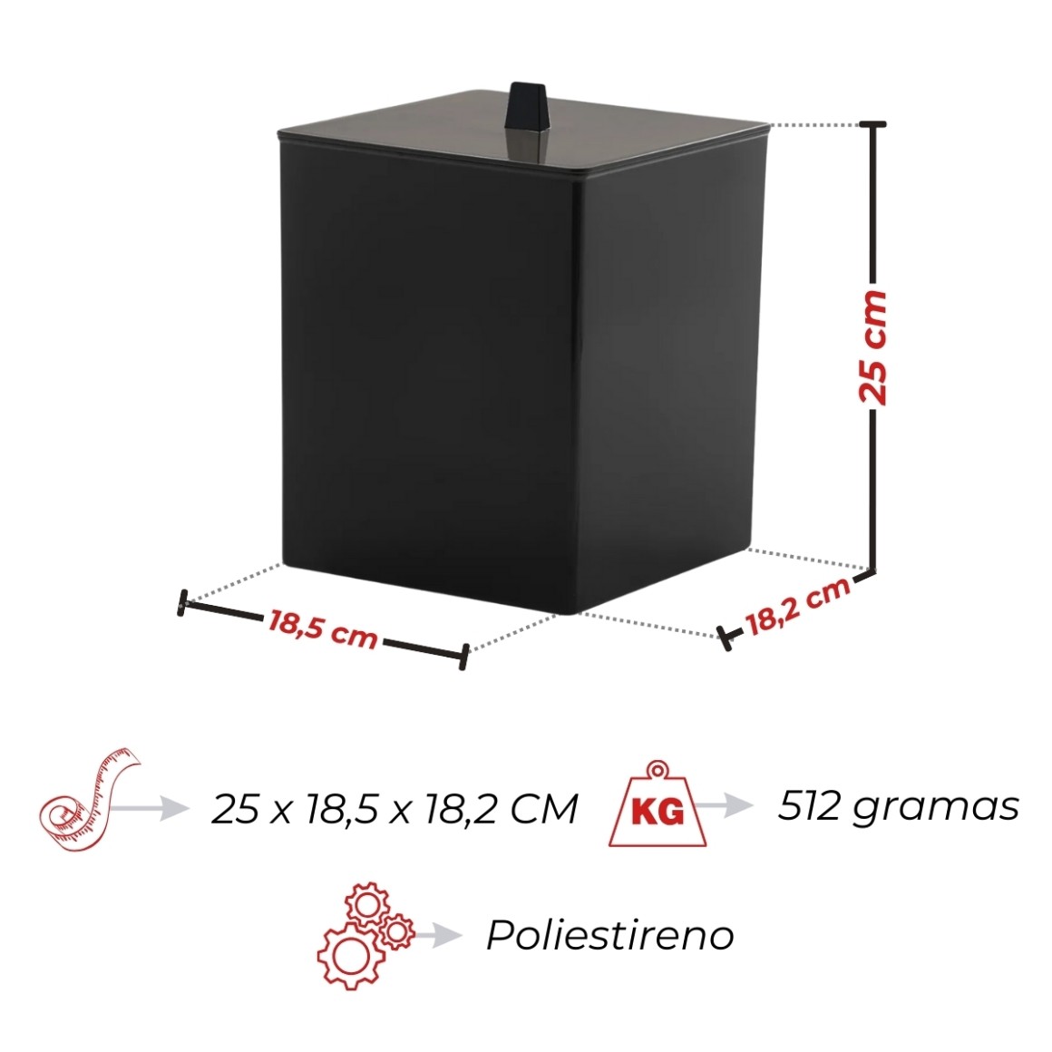 Lixeira Quadrada Preta 25 x 18,5 x 18,2 cm da Paramount