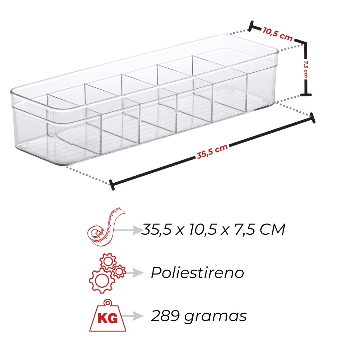 Organizador com Divisórias 35,5 x 10,5 x 7,5 cm Transparente