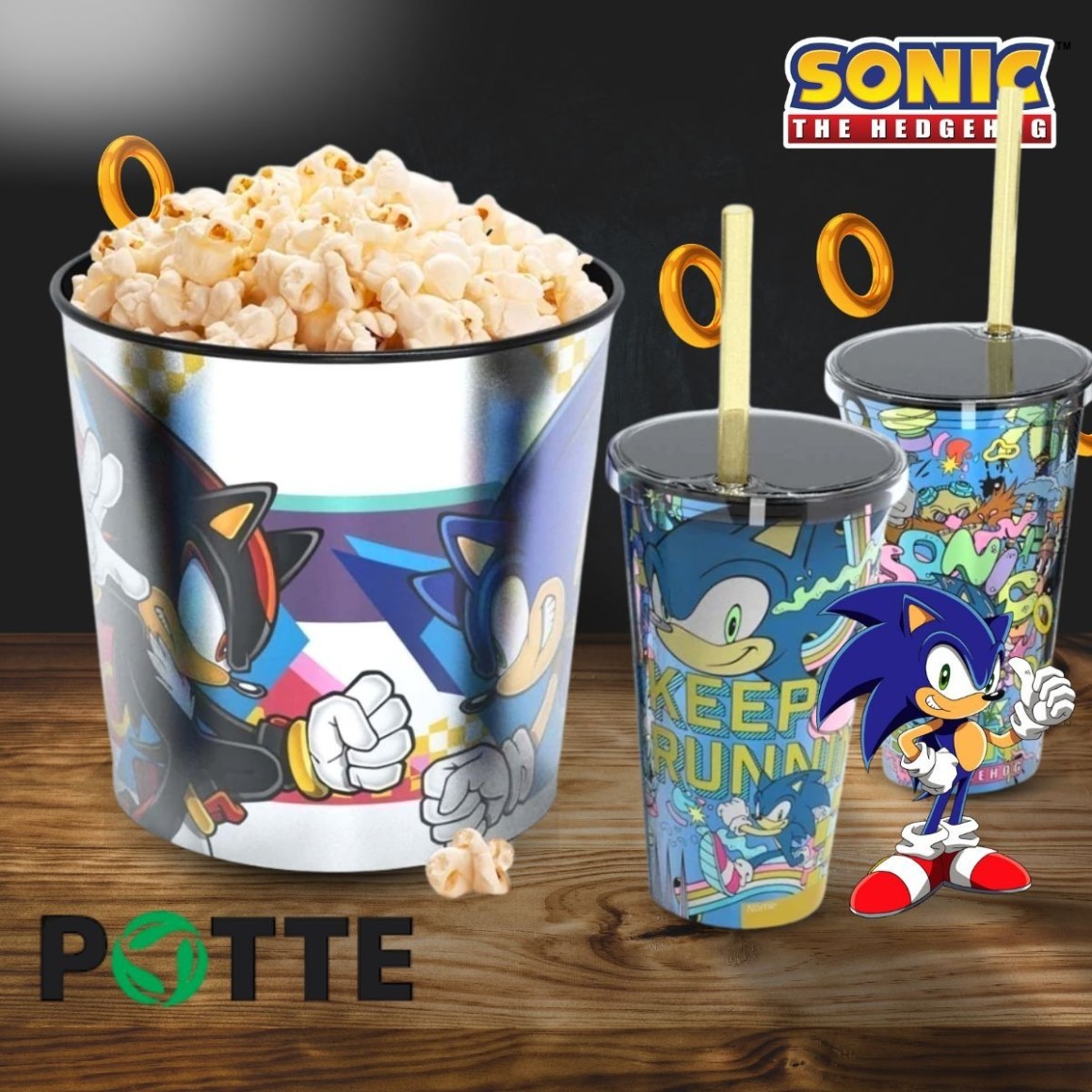 Kit Cinema Sonic 1 Balde de Pipoca 4L + 2 Copos com Canudo