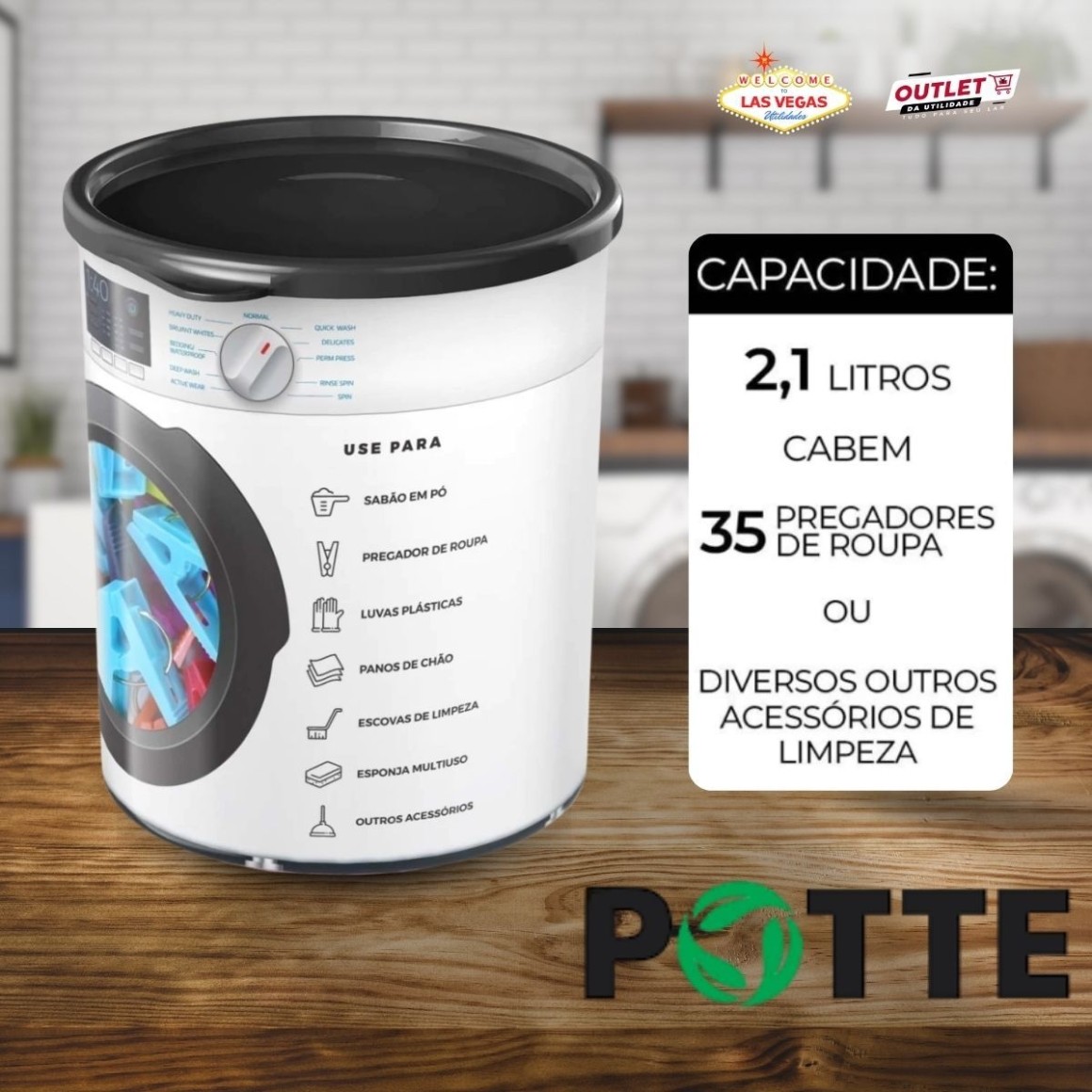 - Capacidade Generosa: Cada pote possui 2,1 litros, ideal para armazenar sabão em pó, prendedores ou pequenos itens de lavanderia.