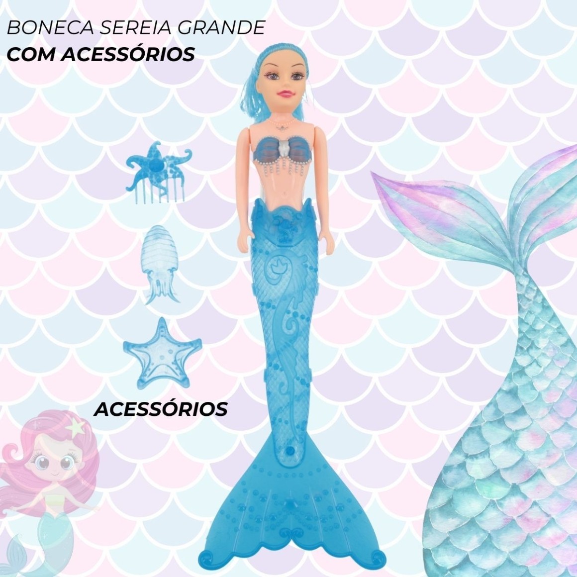 Boneca Sereia Grande Princesa Brinquedo Menina Com Acessórios