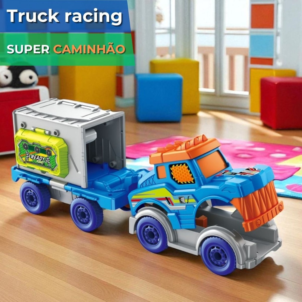 Design Interativo: Fácil de abrir e montar, o caminhão estimula a imaginação ao transformar-se em cenário para diversas aventuras.