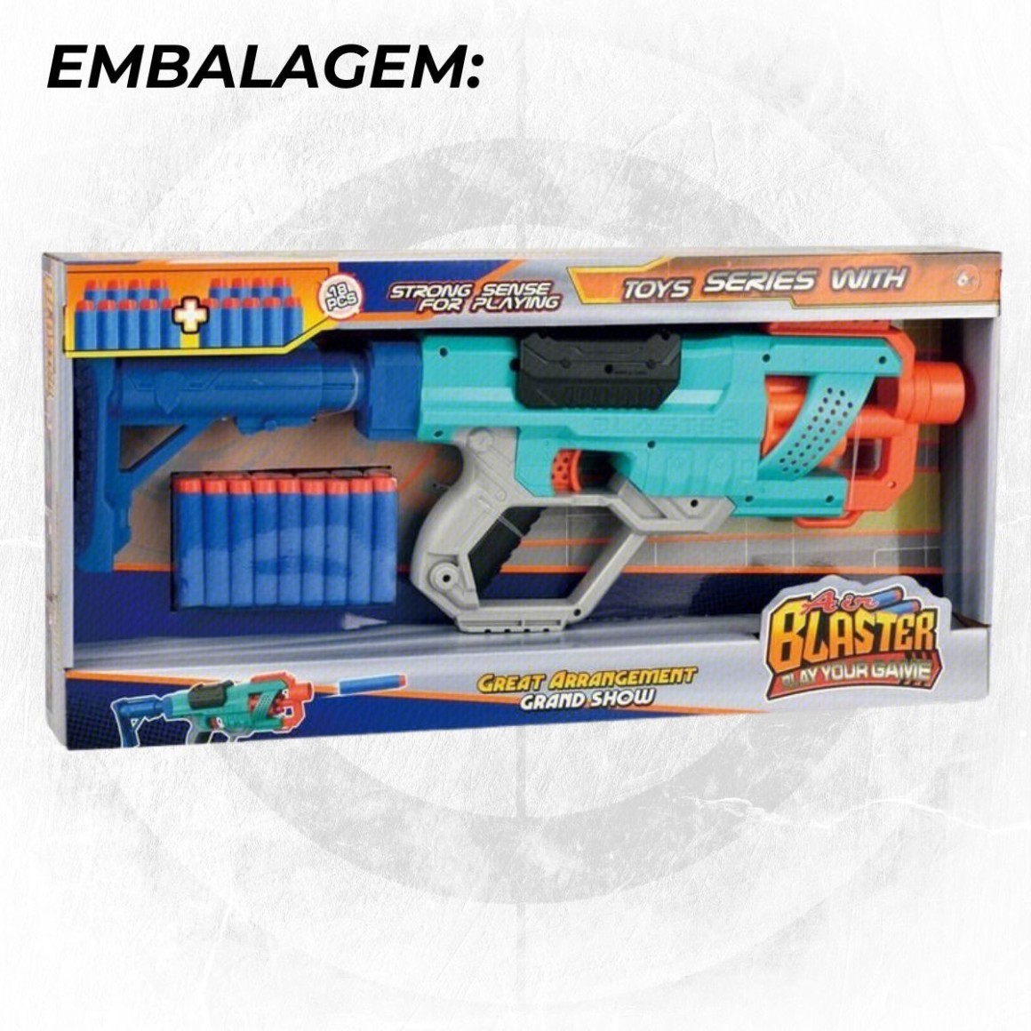 Design Estilo Nerf: Visual moderno e inspirado nos modelos mais famosos de lançadores, trazendo ainda mais estilo à brincadeira.