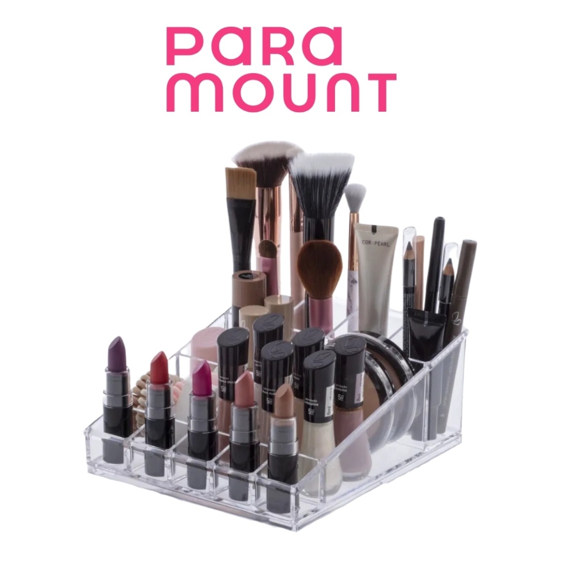 Adicione agora o Organizador de Cosméticos Elegance em Poliestireno Transparente da Paramount à sua rotina de beleza e desfrute de um espaço mais organizado e funcional para seus produtos de beleza.