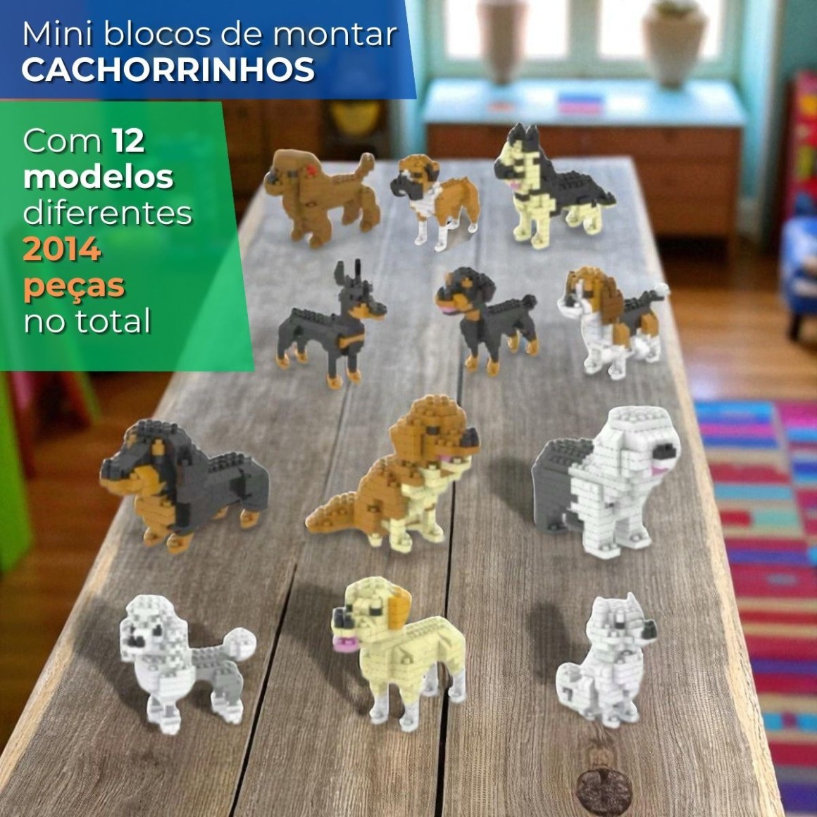 Kit Mini Blocos de Montar Pet Dog Cachorro com 12 Raças