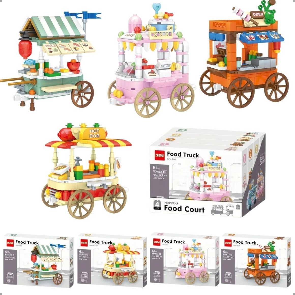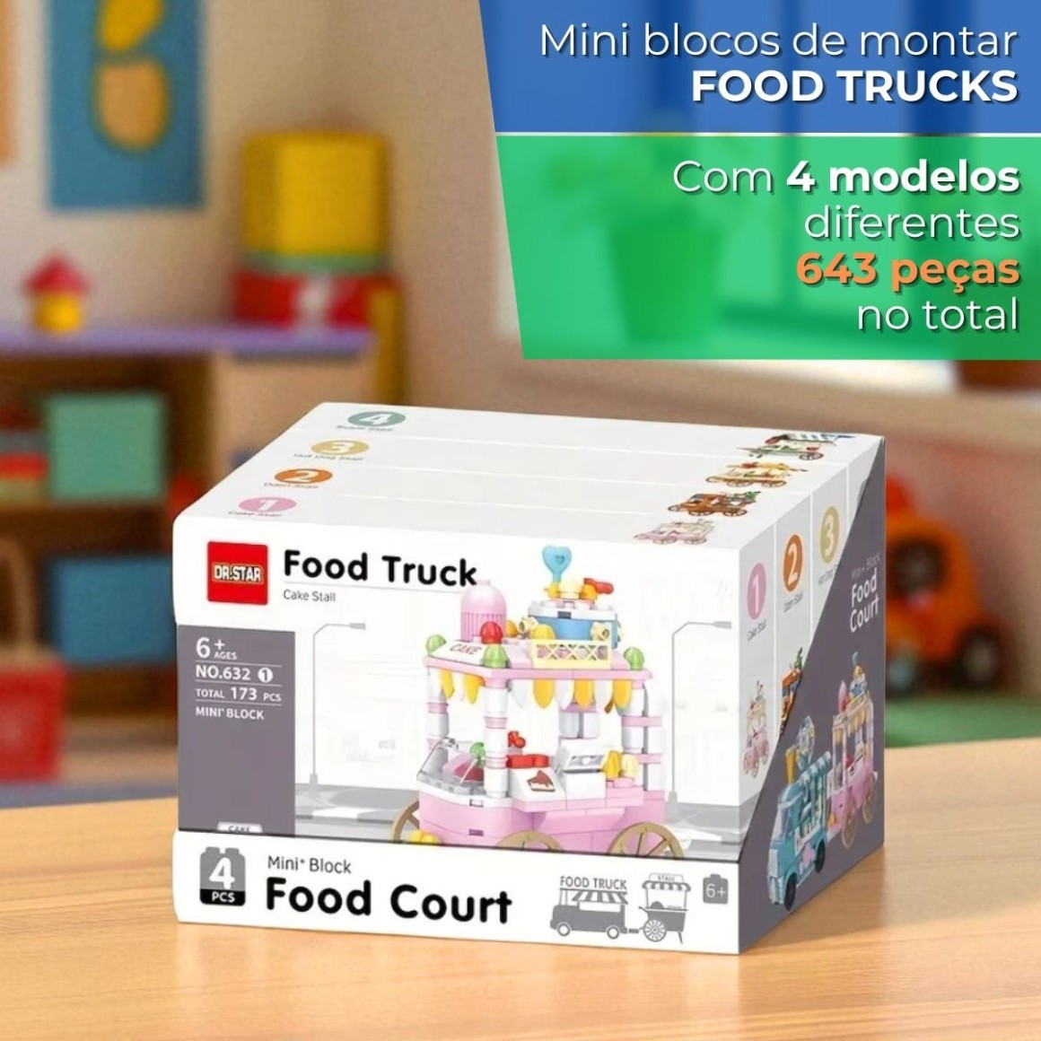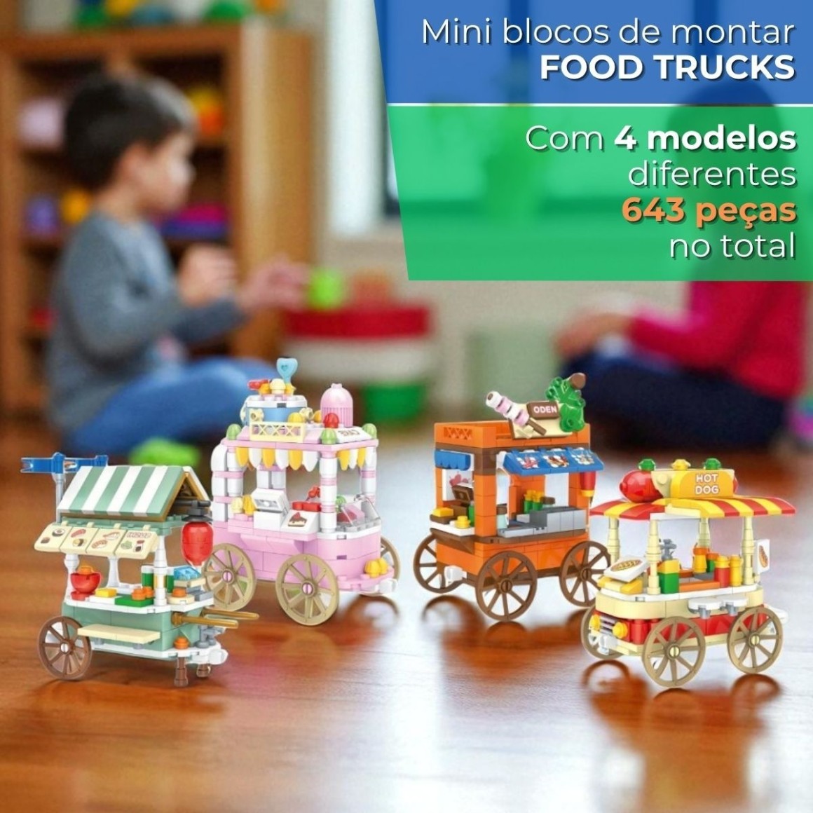 Kit com 4 Mini Blocos de Montar Food Truck Carrinho Lanche