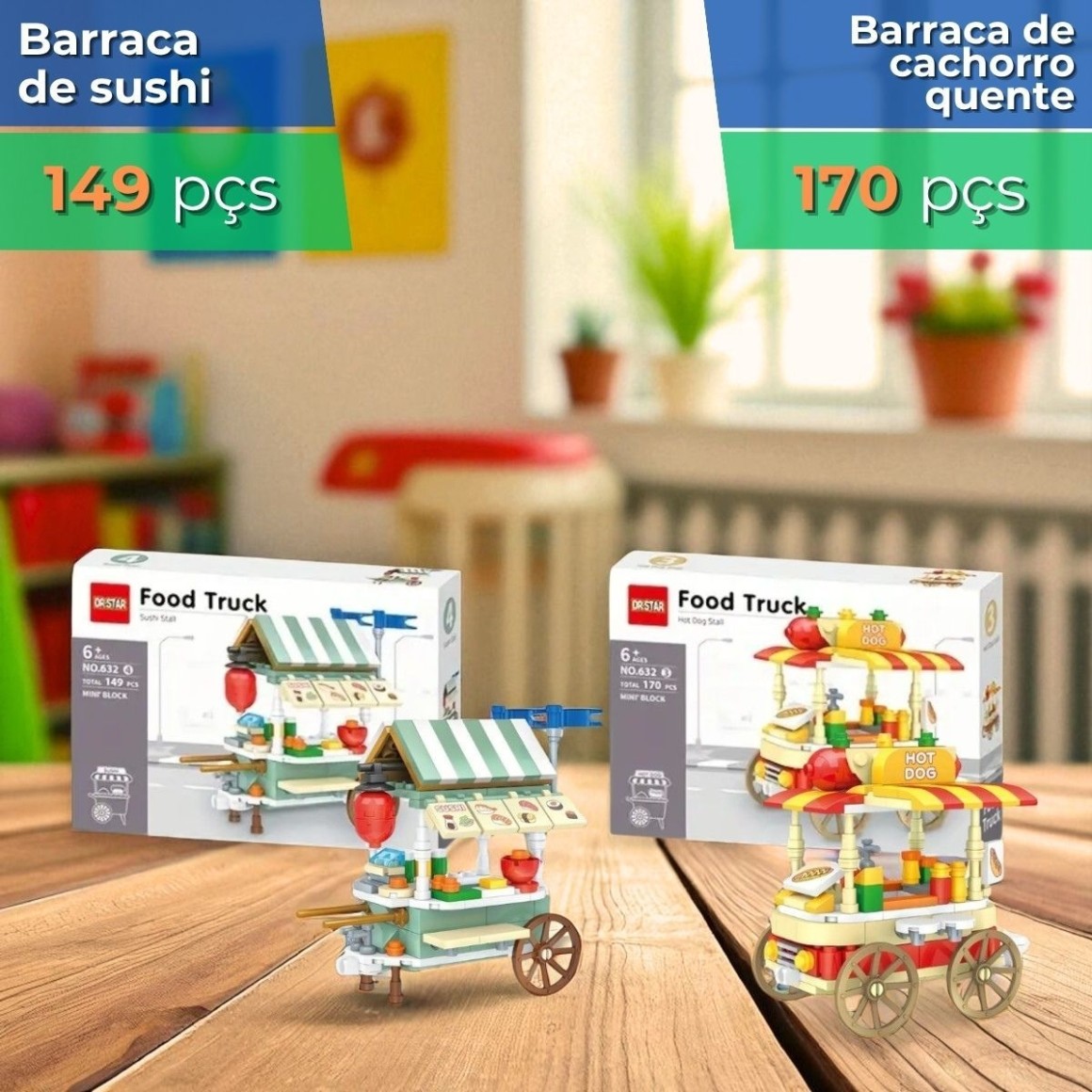Leve a criatividade e o sabor da brincadeira para dentro de casa com o Mini Blocos de Montar Food Truck.