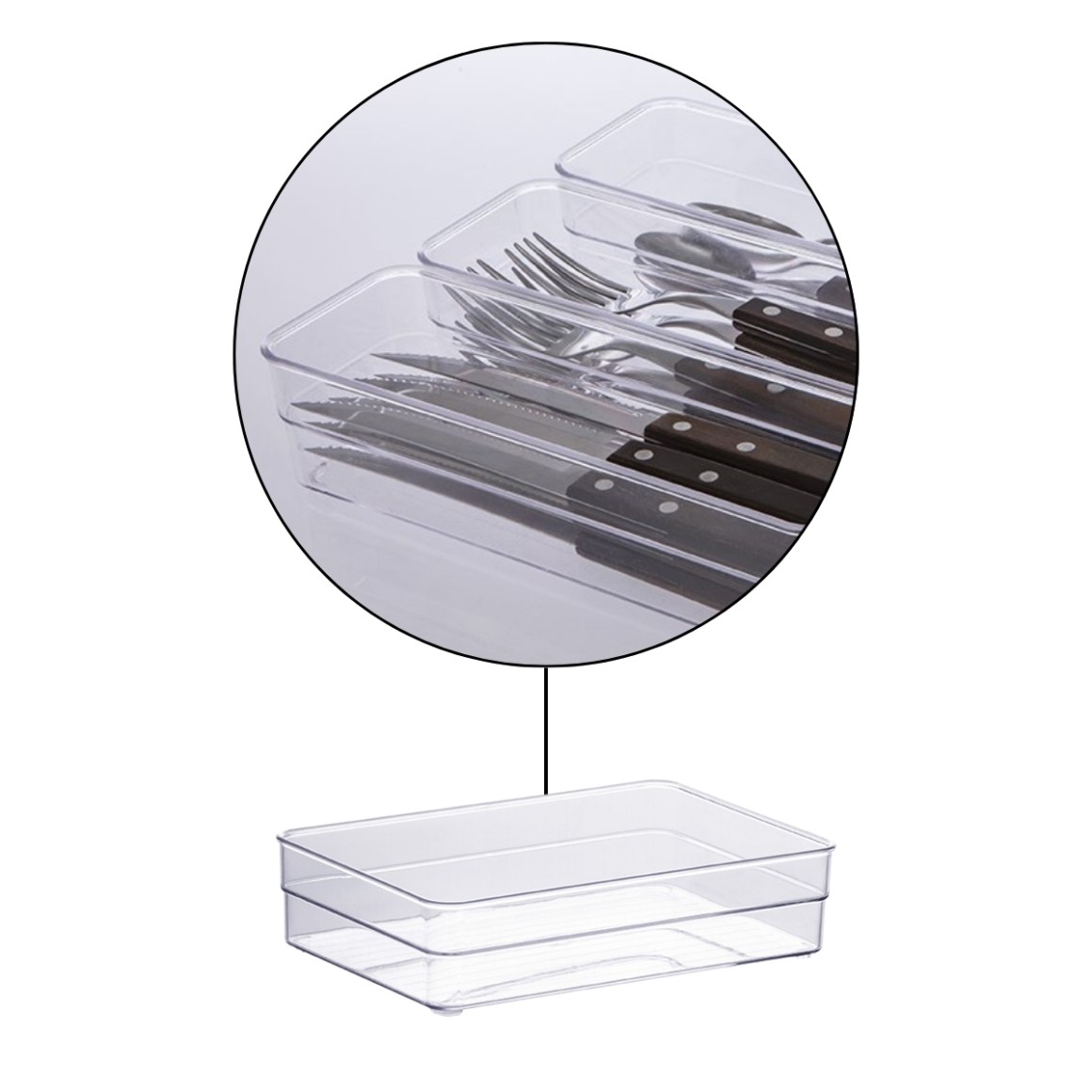 Feito de poliestireno transparente de alta qualidade, este organizador é durável e oferece a vantagem de permitir visualizar facilmente os itens armazenados. Seu design com linhas geométricas adiciona um toque de sofisticação a qualquer ambiente.