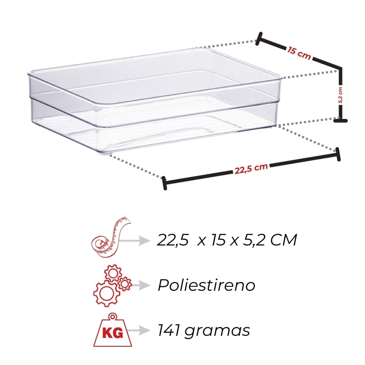 Material: Poliestireno transparente