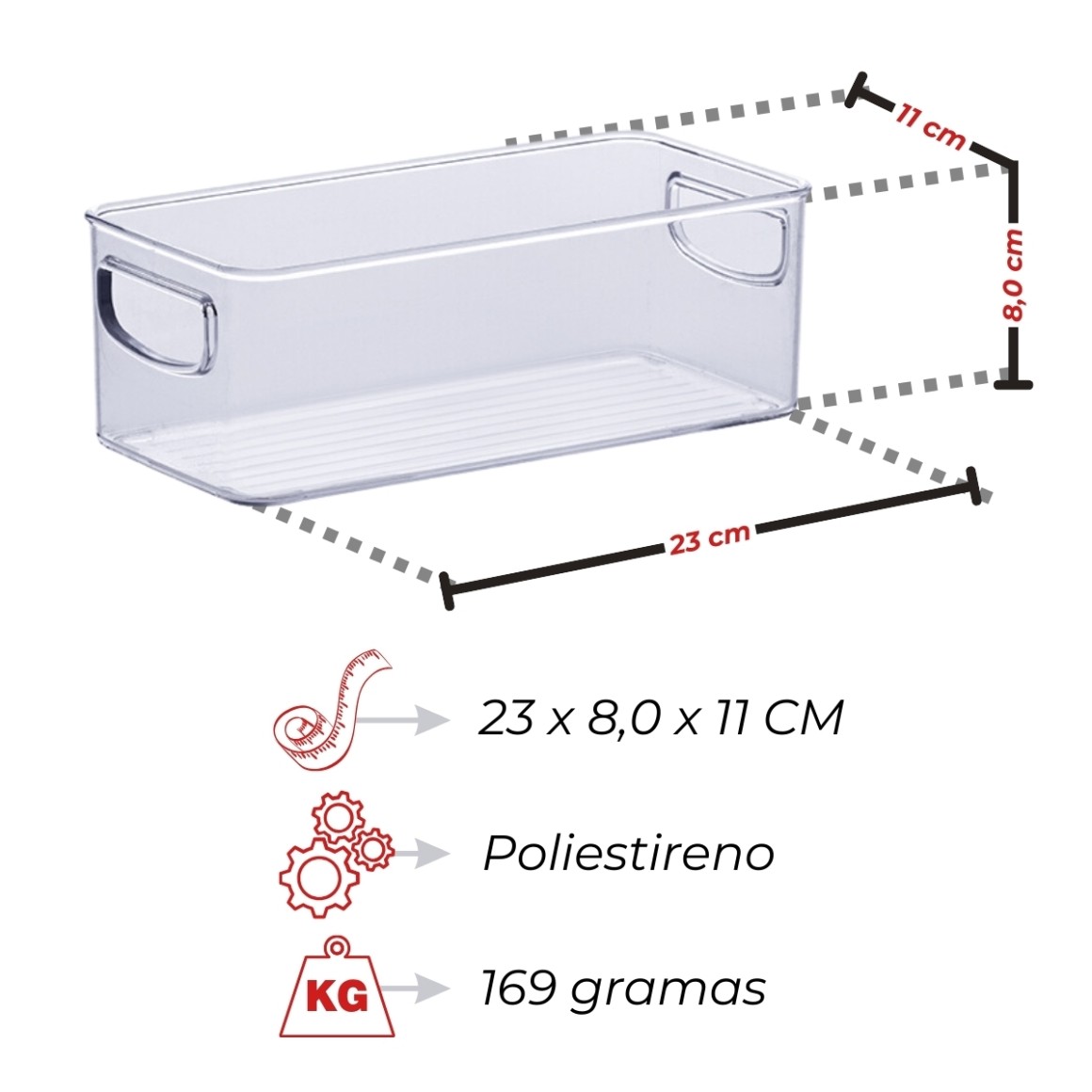 Feito de poliestireno transparente de alta qualidade, este organizador é durável e oferece a vantagem de permitir visualizar facilmente os itens armazenados. Seu design com linhas geométricas adiciona um toque de sofisticação a qualquer ambiente.
