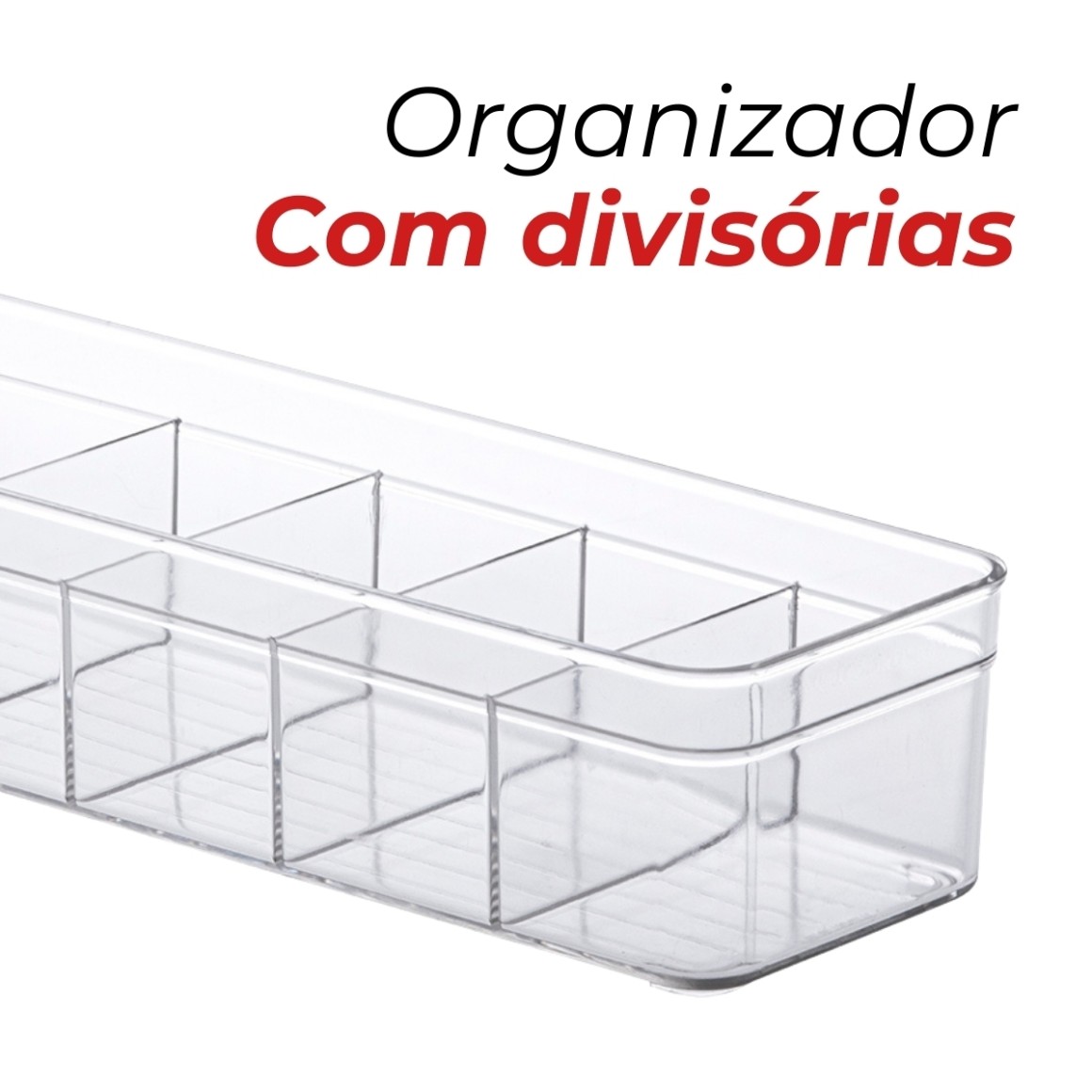 Organizador Diamond com Divisórias 40,5 x 13,5 x 7,5 cm Transparente