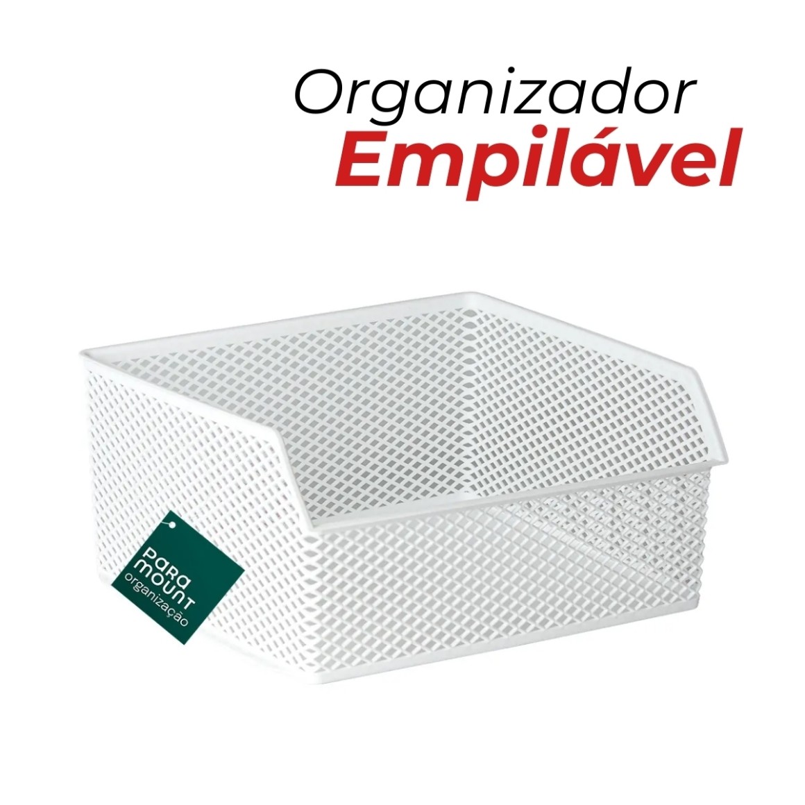 Fabricado em poliestireno branco de alta qualidade, este organizador é durável e resistente, ideal para diversos ambientes. Seu design empilhável permite maximizar o uso do espaço vertical, tornando-o perfeito para áreas com espaço limitado.