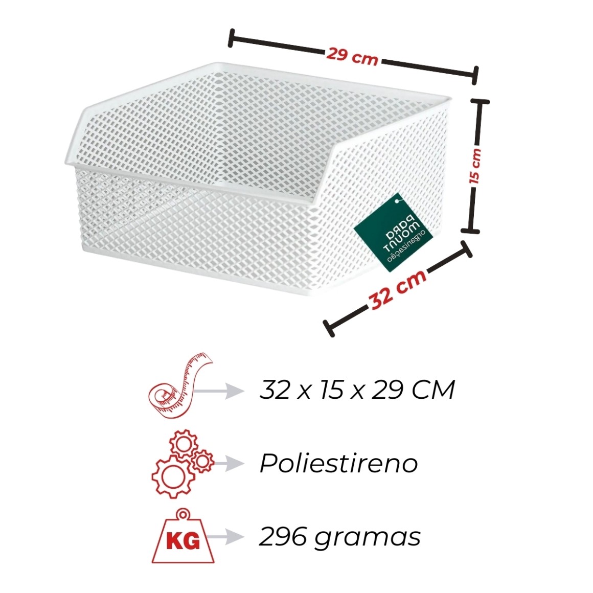 Com dimensões de 32 x 29 x 15 cm, oferece um espaço generoso para armazenar uma variedade de itens, desde materiais de escritório até utensílios domésticos, acessórios de beleza, e muito mais. A cor branca proporciona um toque clean e moderno ao seu ambiente.