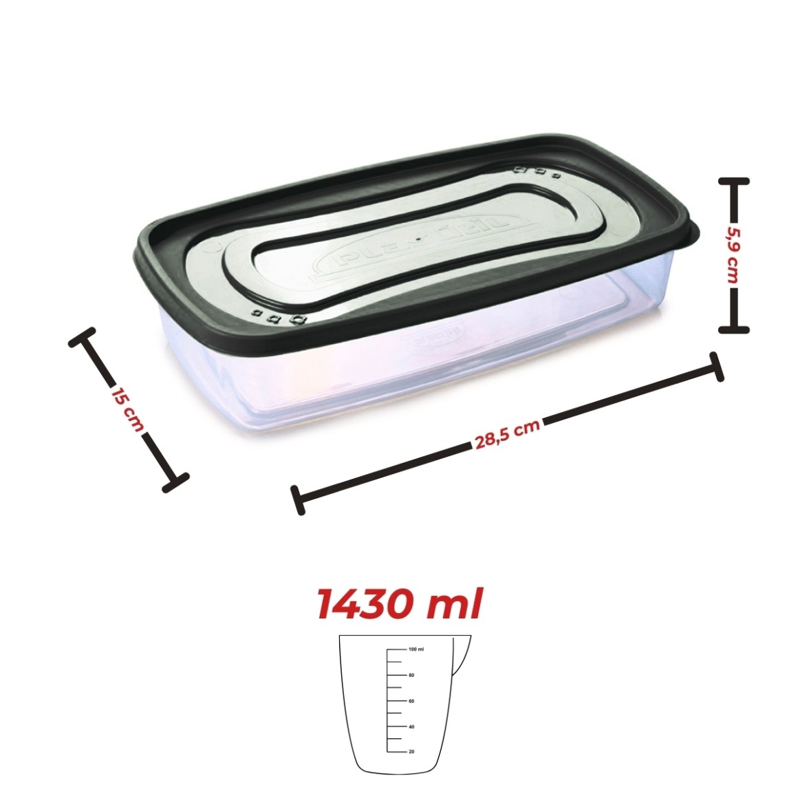 Clic Pote Retangular 1,43 Litros com Tampa Preta da Plasútil