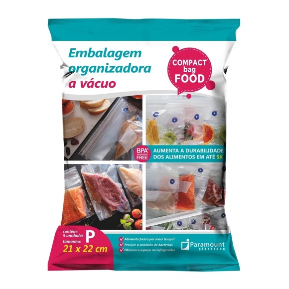 Invista agora nos Sacos a Vácuo Compact Food P da Paramount e desfrute de alimentos frescos e saborosos por mais tempo, com praticidade e conveniência.