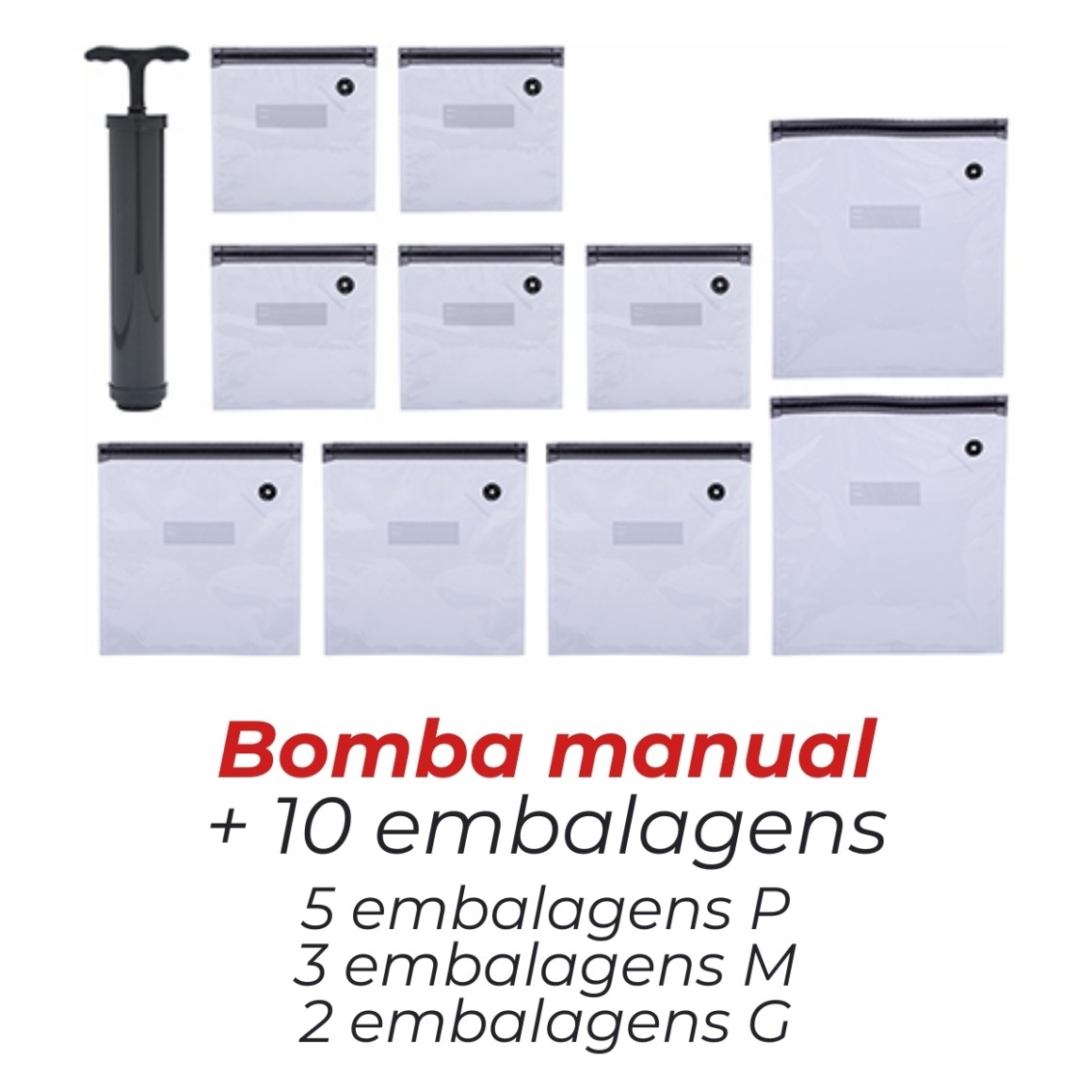 Pressione repetidamente a bomba manual para retirar o ar do saco até que esteja completamente selado.