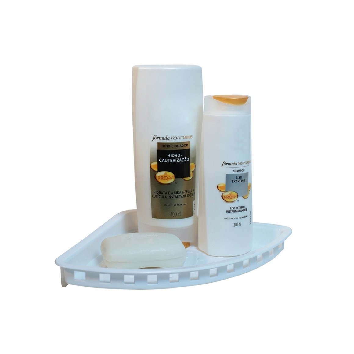 Fabricada em poliestireno de alta qualidade, esta cantoneira é resistente e durável, suportando o peso de produtos de higiene pessoal, utensílios de cozinha ou outros itens que você deseja organizar.