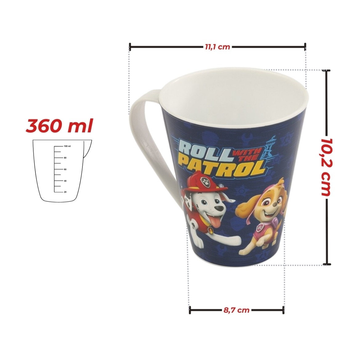 A Caneca Patrulha Canina em Plástico da Plasútil é a escolha perfeita para trazer diversão e praticidade ao dia a dia das crianças. Com uma capacidade de 360 ml, essa caneca é ideal para servir diversas bebidas, como leite, suco e água, de maneira segura e lúdica.