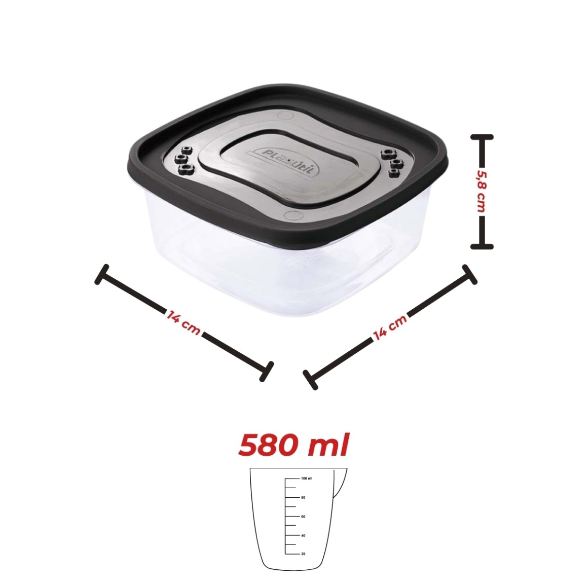 Clic Pote Quadrado 580 ml em Plástico Tampa Preta Plasútil