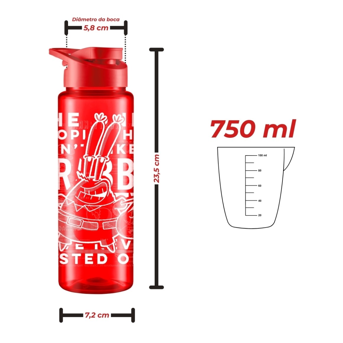 Este Squeeze Sport é perfeito para fãs do Bob Esponja e do personagem Sr Siriguejo. Ideal para manter-se hidratado com estilo e diversão!