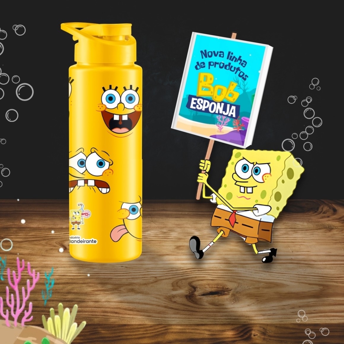 Adicione um toque de diversão e praticidade ao seu dia com o Squeeze Sport Amarelo do Personagem Bob Esponja de 750ml da Bandeirante!