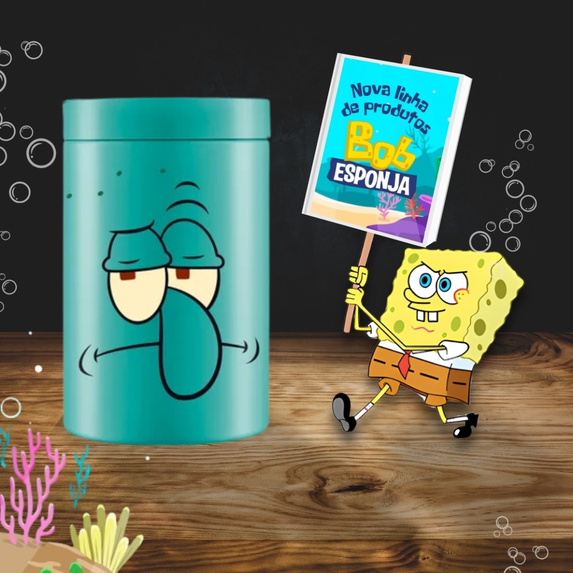 Pote Organizador Verde Lula Molusco do Bob Esponja de 1500ml