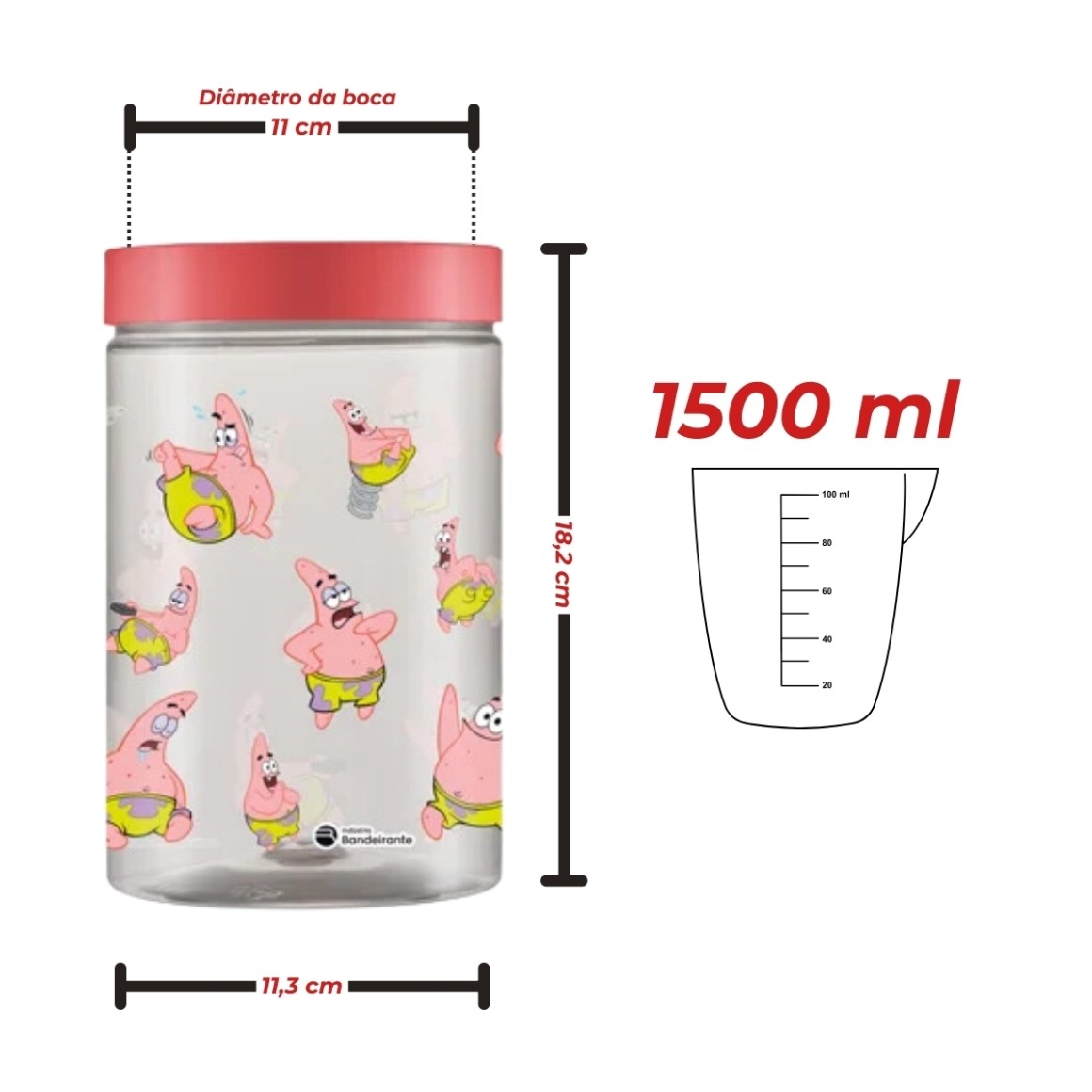 Adicione agora mesmo o Pote Organizador Transparente com Tampa Rosa do Personagem Patrick de 1500ml da Bandeirante ao seu dia a dia e desfrute de um produto divertido, prático e funcional.
