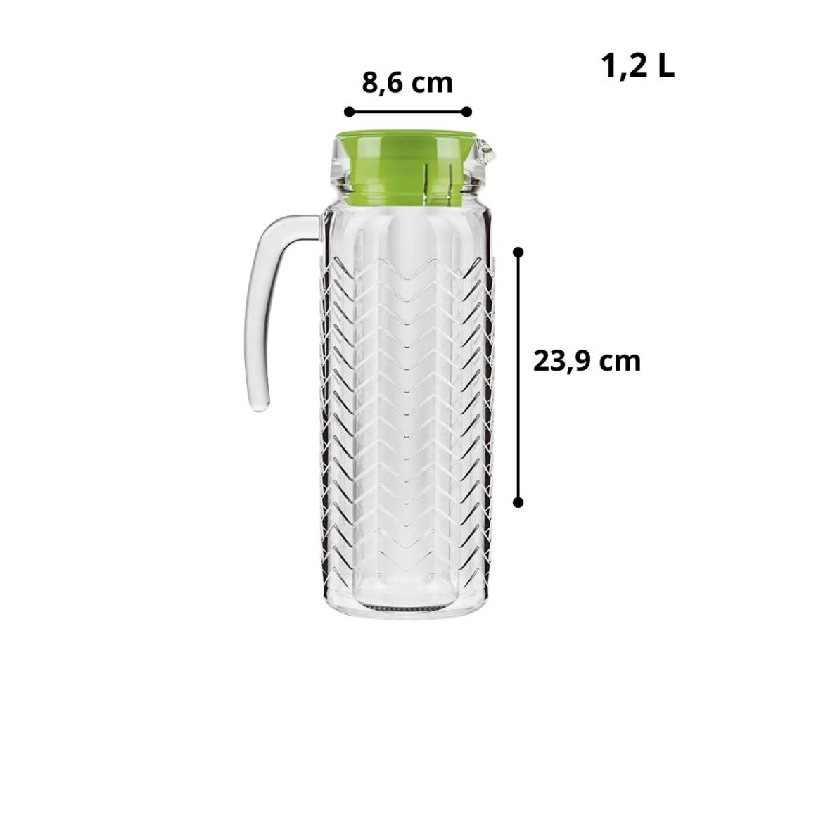 Ideal para ser guardada na porta da geladeira, essa jarra é perfeita para servir água, sucos e bebidas em geral.