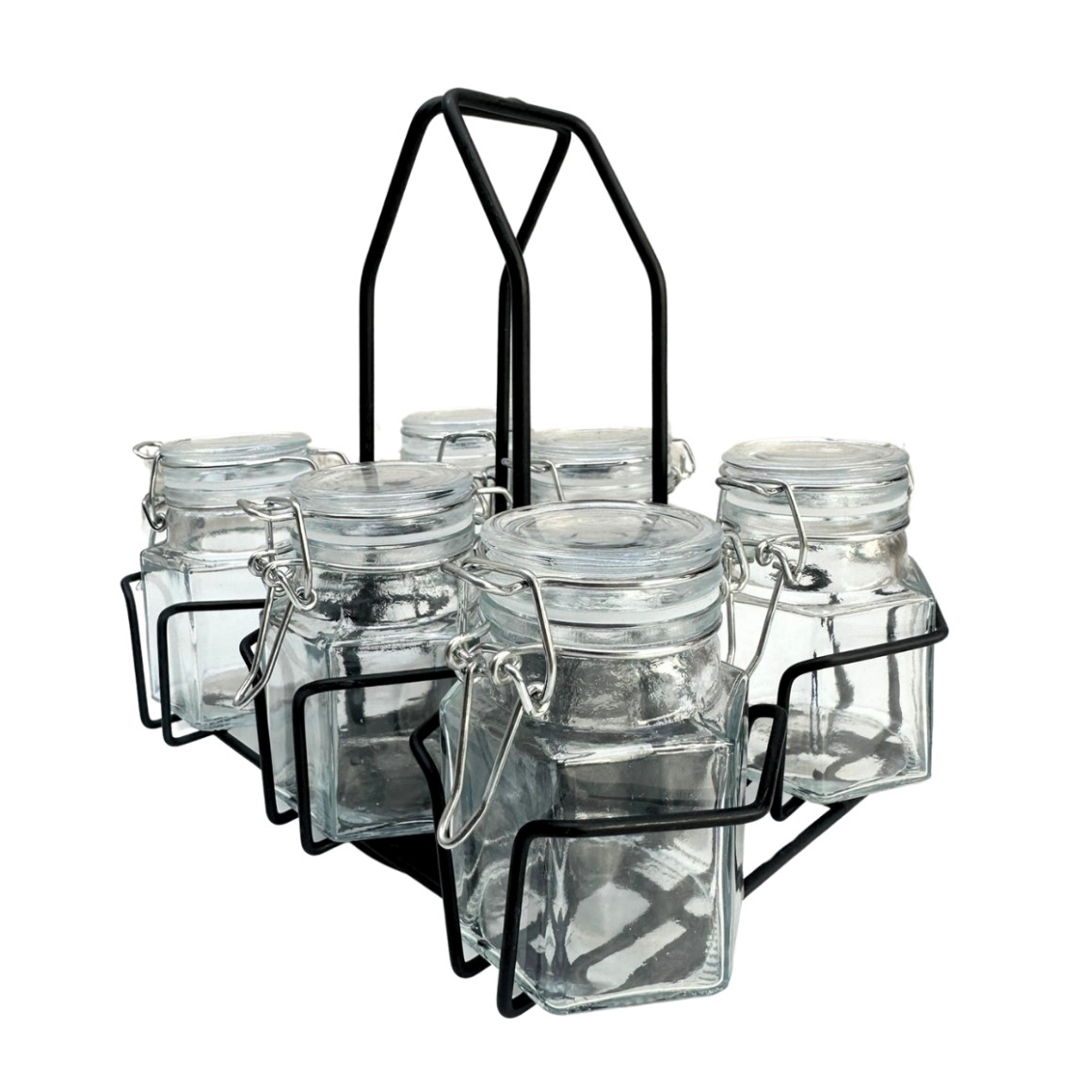 Organize sua cozinha com praticidade e estilo usando o Jogo com 6 Porta Condimentos Herméticos de Vidro Giratório. Este elegante conjunto foi projetado para manter seus condimentos favoritos sempre ao alcance das mãos, adicionando funcionalidade e beleza à sua bancada de cozinha.