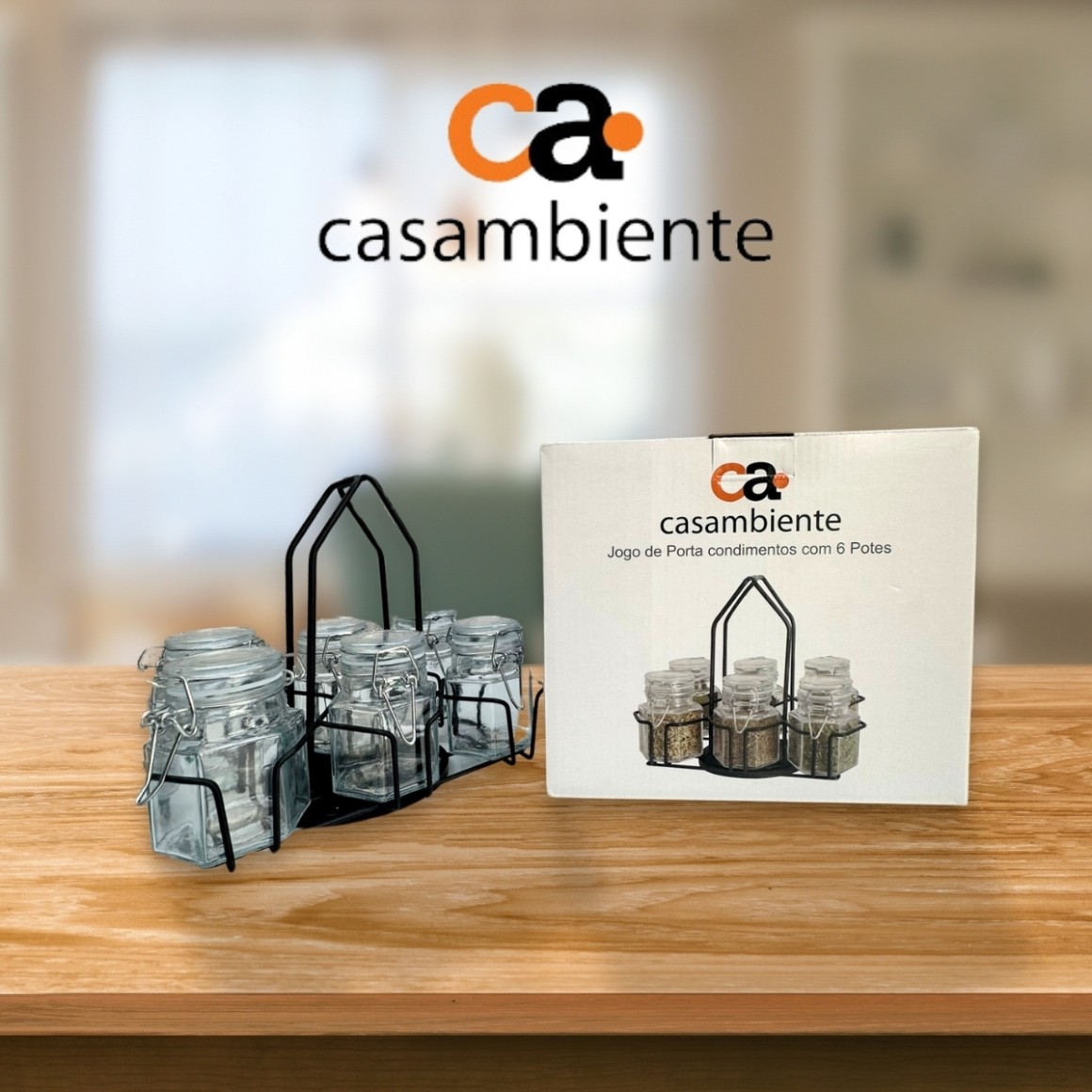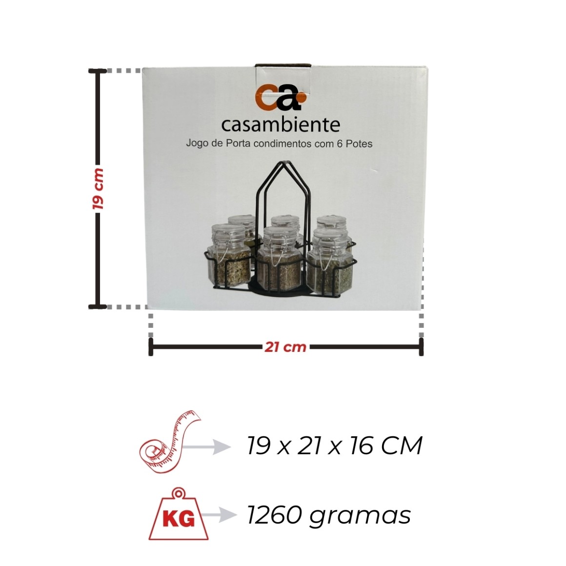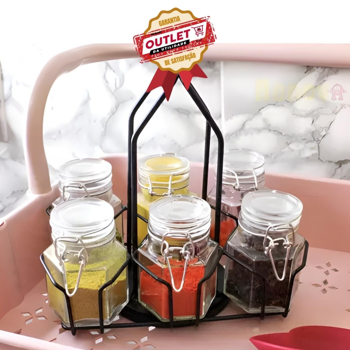 6 Potes com Travas: Os potes são equipados com tampas de travamento seguro, garantindo que os condimentos permaneçam frescos e livres de umidade.