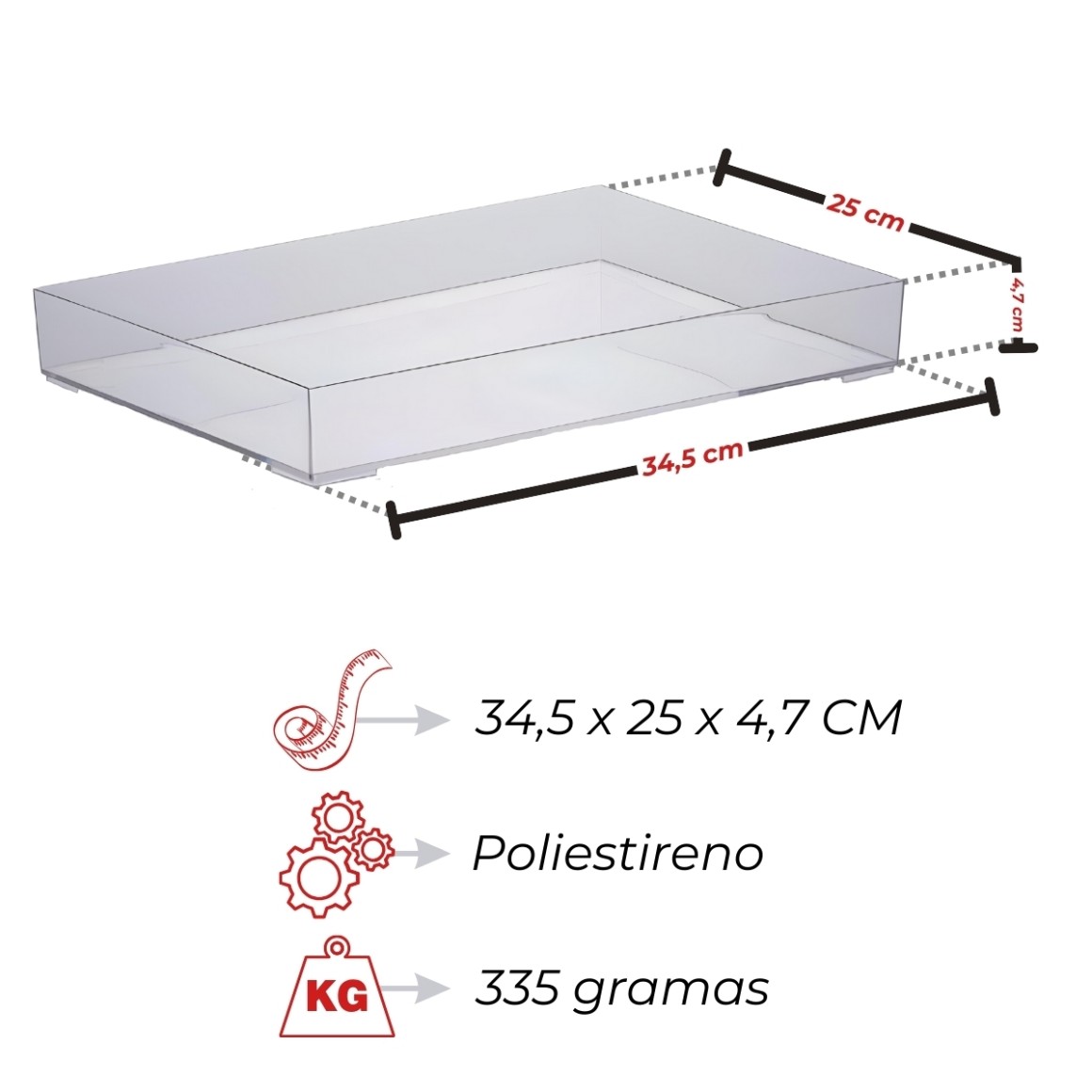 Feita de poliestireno transparente de alta qualidade, esta bandeja é resistente e durável, garantindo uma longa durabilidade. Sua transparência permite visualizar facilmente o conteúdo da bandeja, facilitando a localização dos itens armazenados.