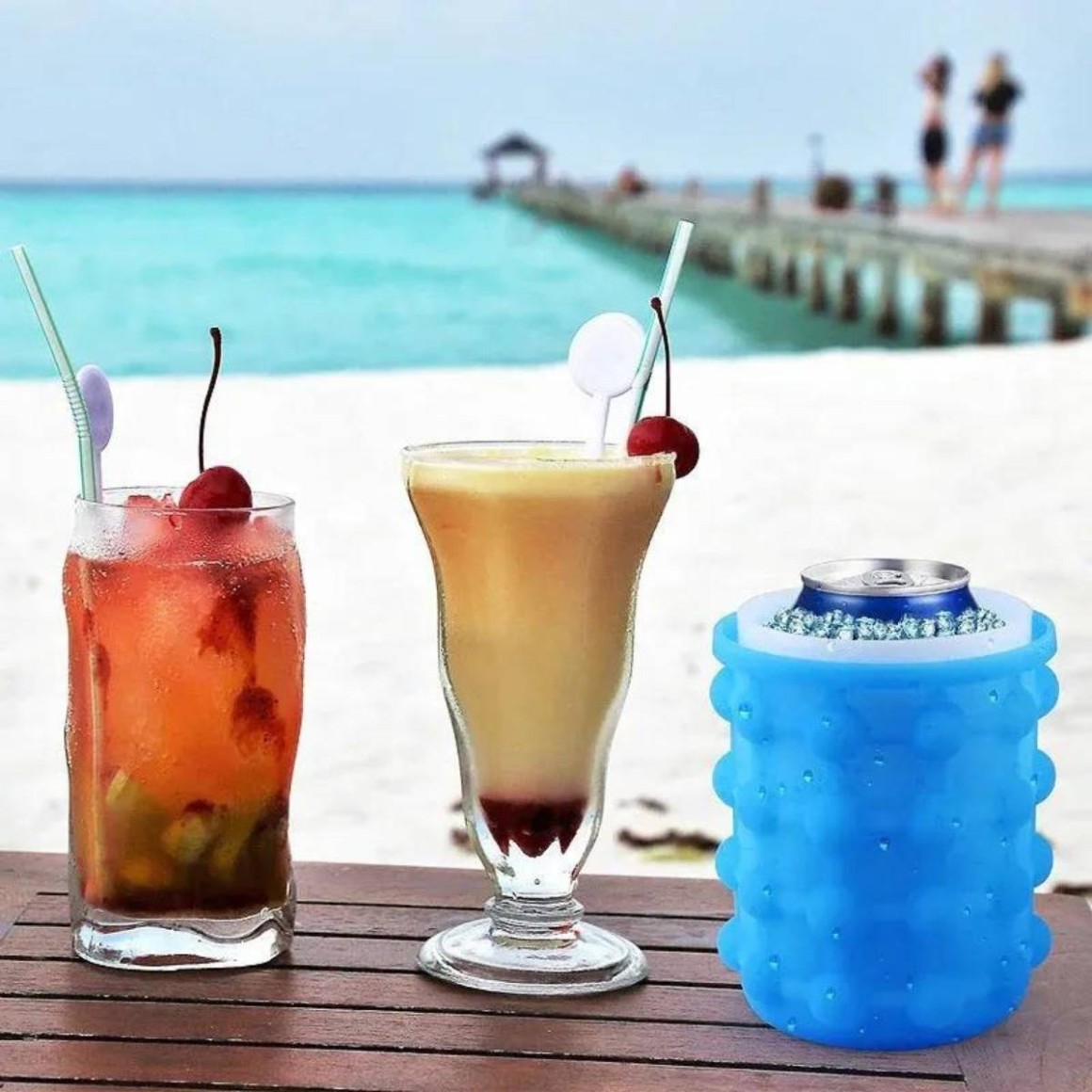 Descubra o Mini Balde Forma De Gelo em Silicone, a solução moderna para manter suas bebidas sempre geladas. Ideal para latas e garrafas, este balde inovador produz até 40 cubos de gelo de uma vez com facilidade.