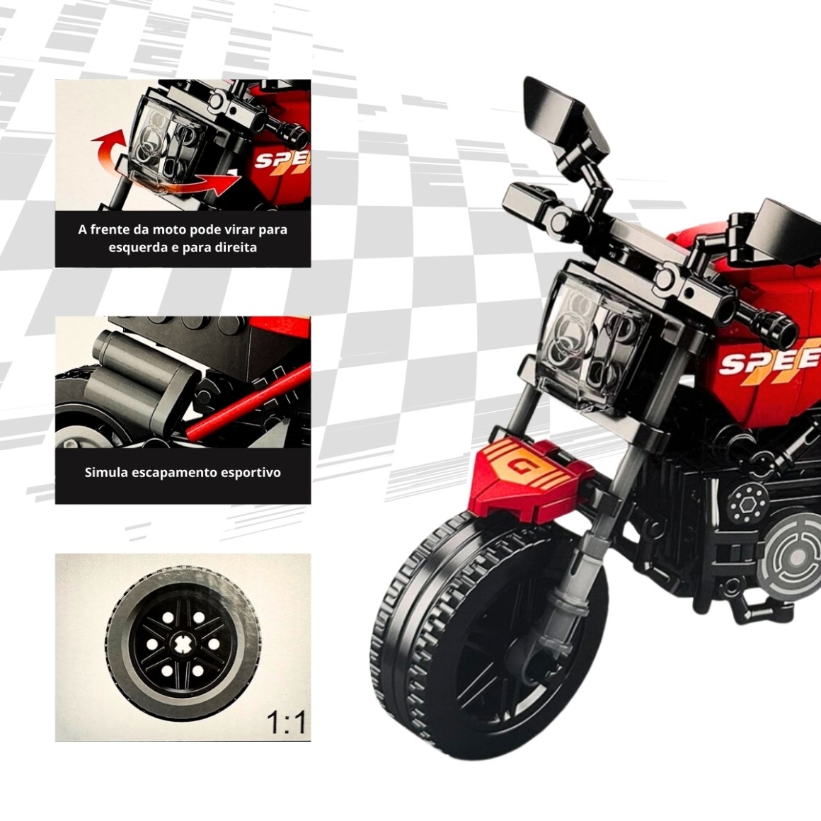 Design Realista: As peças são projetadas para criar uma réplica realista de uma moto e capacete, estimulando a imaginação e o interesse pelo mundo dos veículos.
