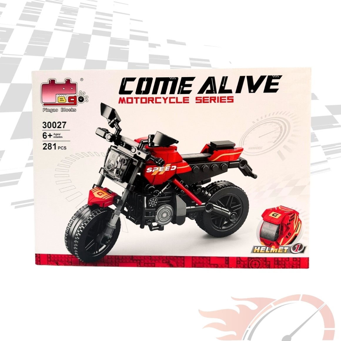 281 Peças Detalhadas: Com 281 peças variadas, o conjunto oferece uma experiência de construção envolvente, desafiando a criatividade e habilidade das crianças ao montar uma moto e um capacete.