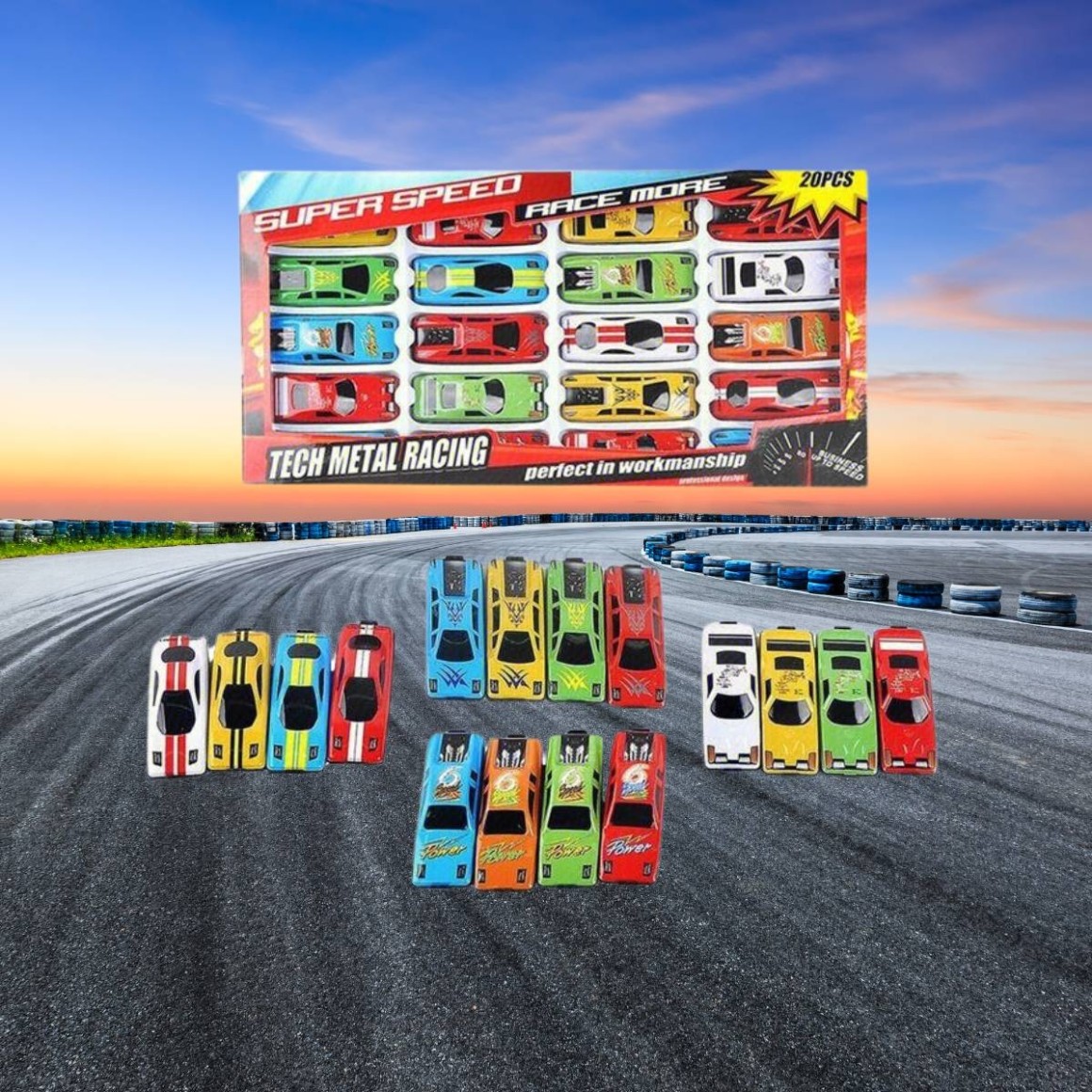 Coleção de Carrinhos Coloridos Super Speed Com 20 Unidades