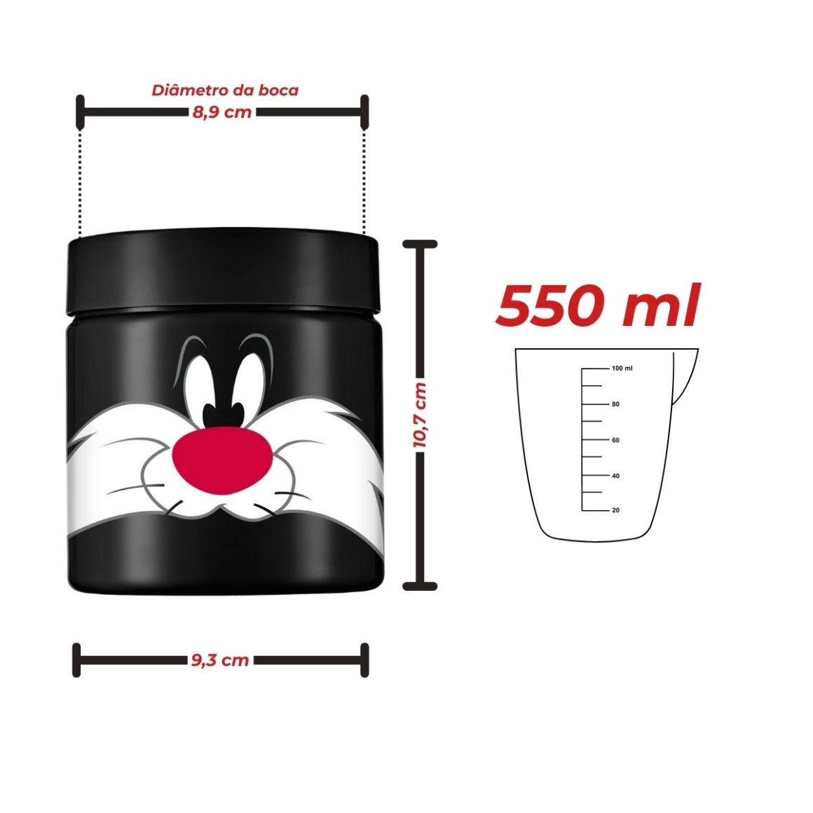 Pote Organizador Preto do Personagem Frajola (do Piu Piu e Frajola) – 550ml – Bandeirante