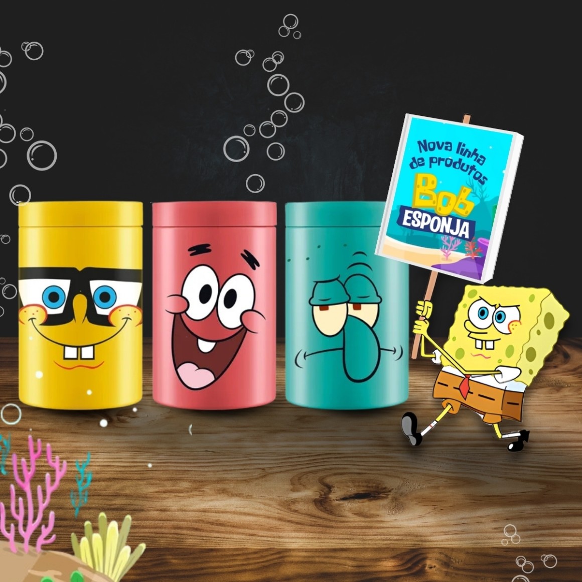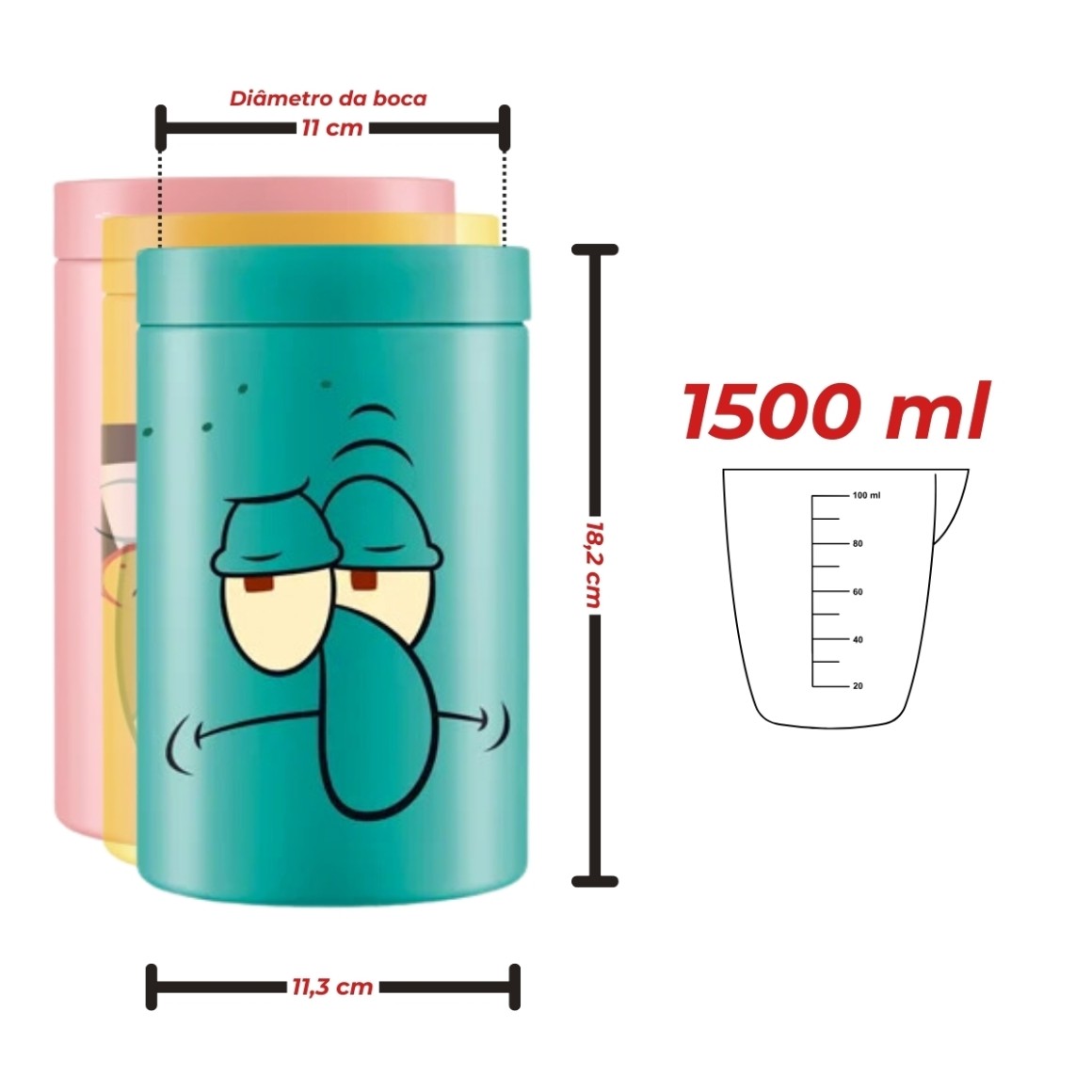 Design Divertido e Colorido: Cada pote é decorado com um dos amados personagens da turma do Bob Esponja, trazendo um toque lúdico para sua organização.
