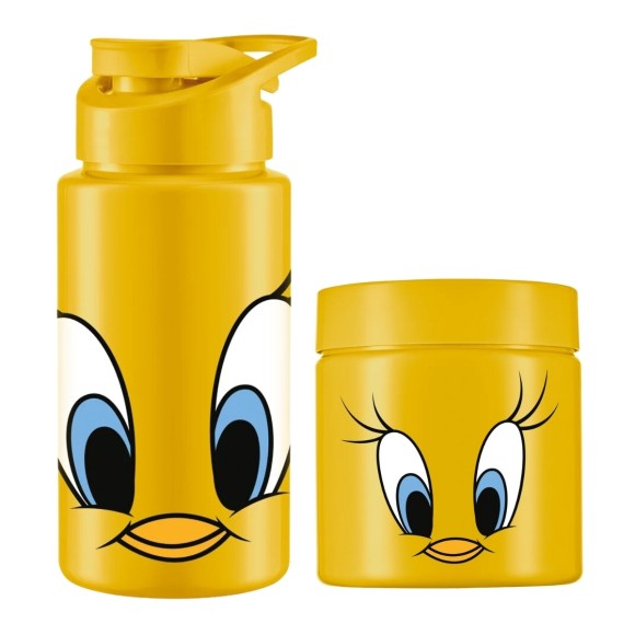 Kit com Pote Organizador e Squeeze Sport do Personagem Piu Piu – Looney Tunes – Bandeirante