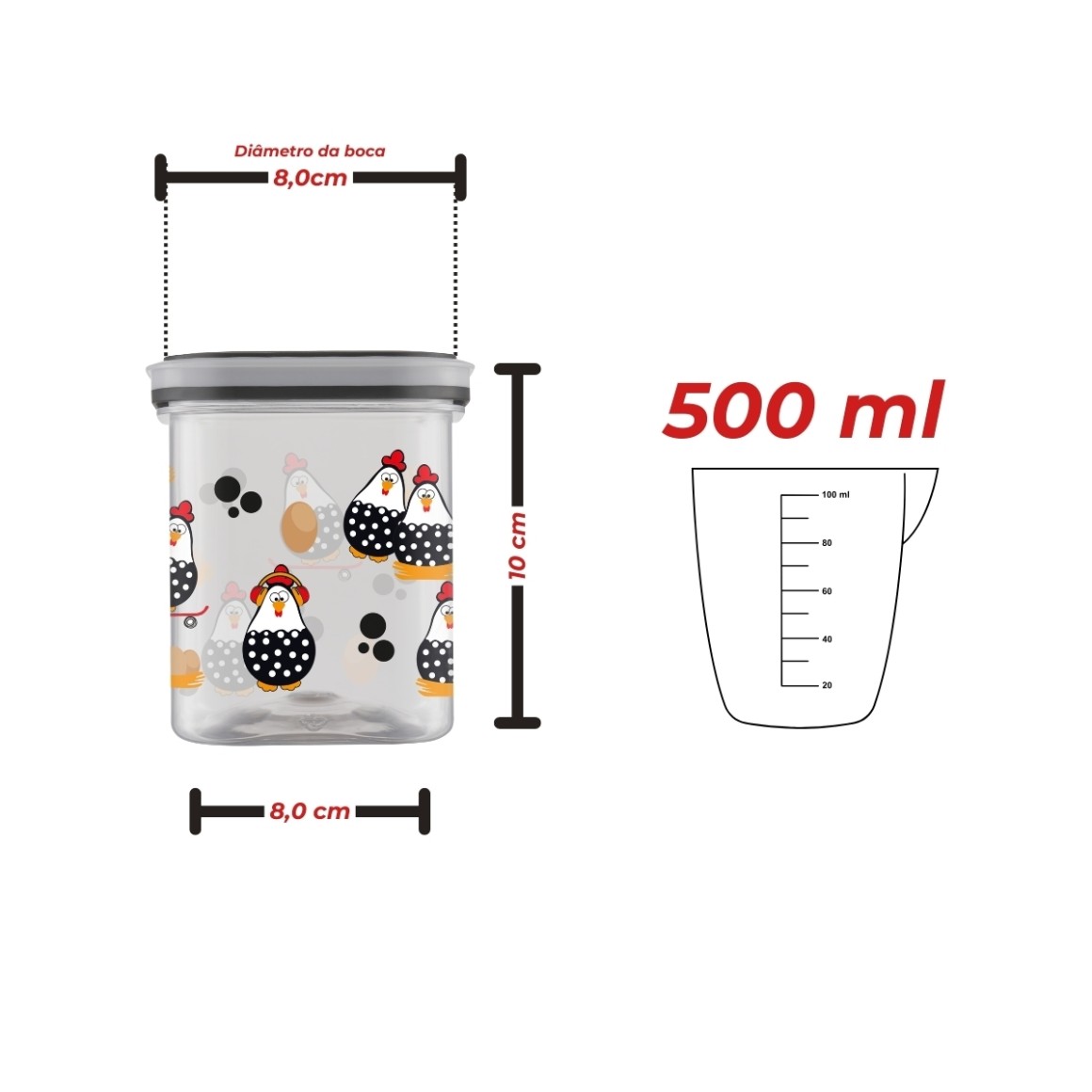 Pote Organizador Quadrado Transparente com Estampa de Galinhas – 500 ml – Bandeirante