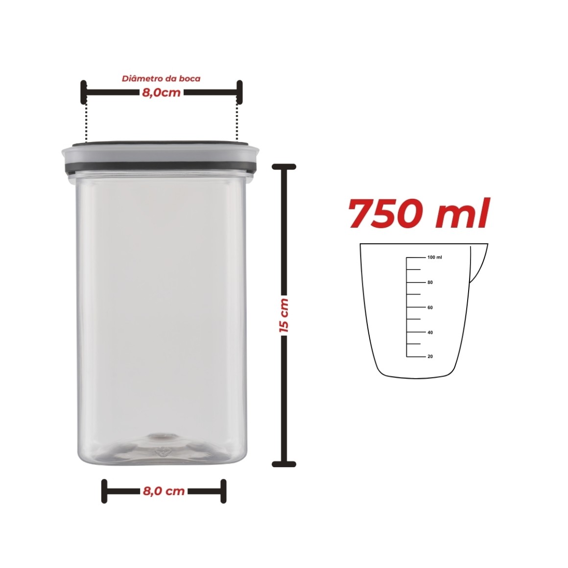 Capacidade Versátil: Com 750 ml, o pote é perfeito para armazenar uma ampla gama de itens, como snacks, itens de papelaria ou pequenos acessórios, oferecendo uma solução prática e compacta.