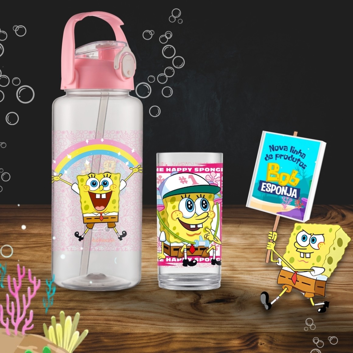 Kit Squeeze Sport e Copo Transparente Bob Esponja – Bandeirante